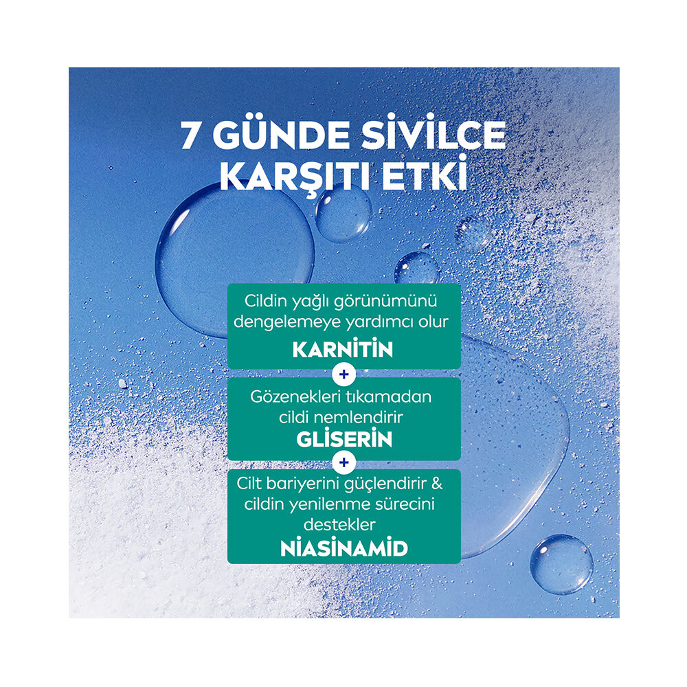 Karnitin,Gliserin ve Niasinamid içeren formülü sivilceye eğilimli ciltler için geliştirilmiştir.