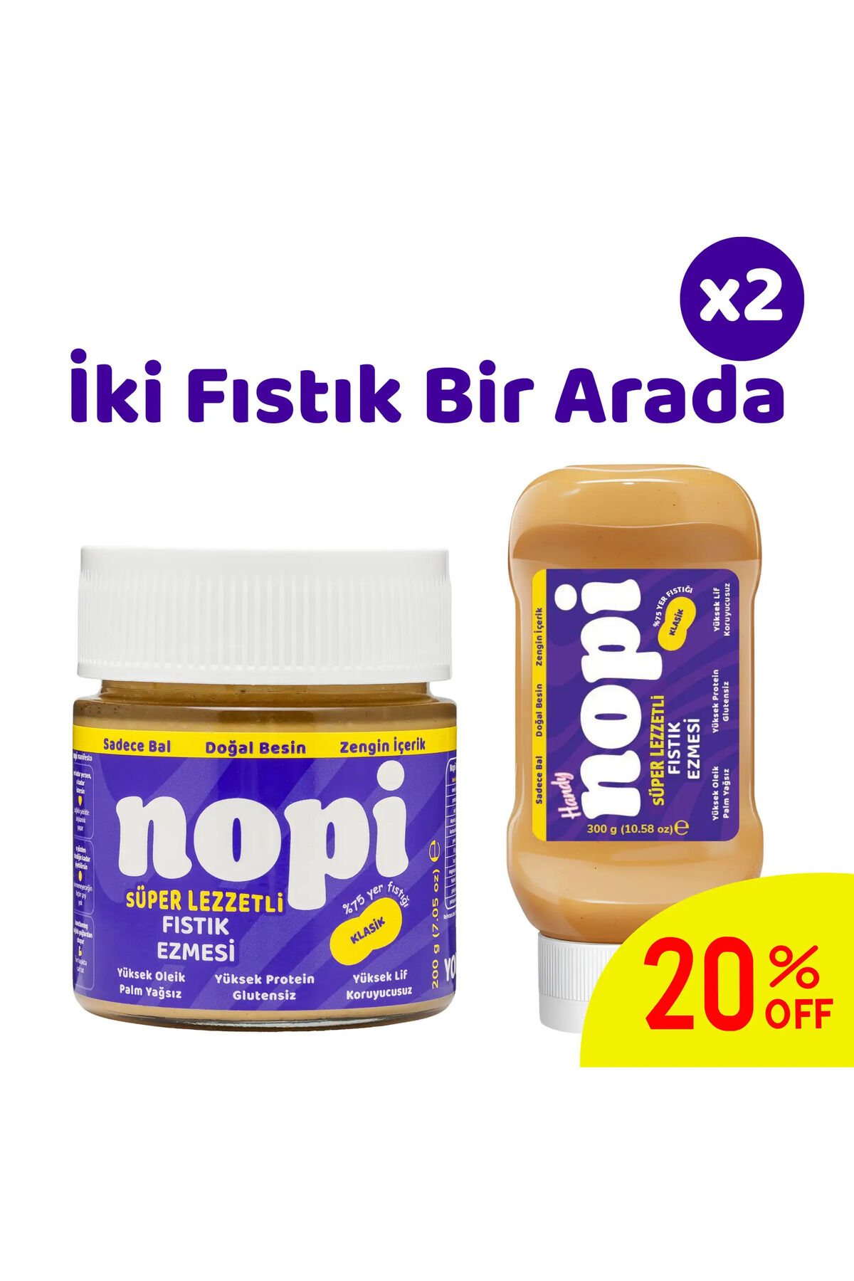 Nopi İkili Set - Klasik Yer Fıstığı 200 g & Handy Yer Fıstığı Ezmesi 300 g