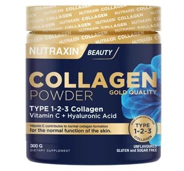 NUTRAXIN Collagen, güzellik kavramında önem taşıyan hyalüronik asit ve C vitaminini bir arada sunar. İçeriğinde yer alan kolajen, kolay emilim sağlayan hidrolize kolajendir. Aromasızdır.