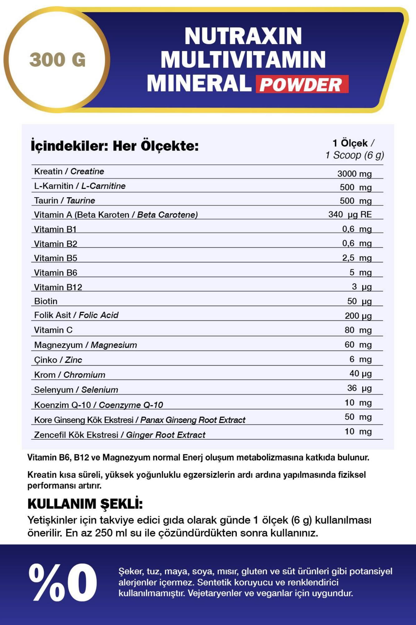 Nutraxin Multivitamin Mineral Powder 300 gr