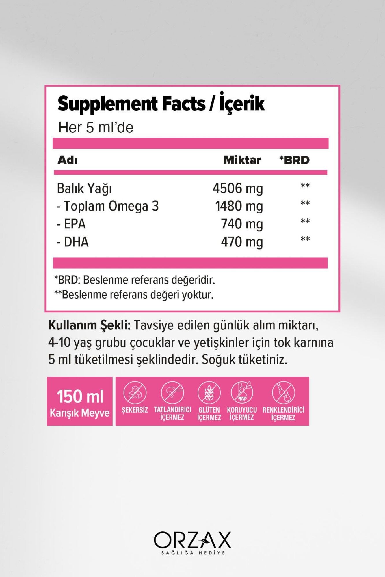 Ocean Tutti Frutti Karışık Meyve Aromalı Balık Yağı Şurup 150 ml