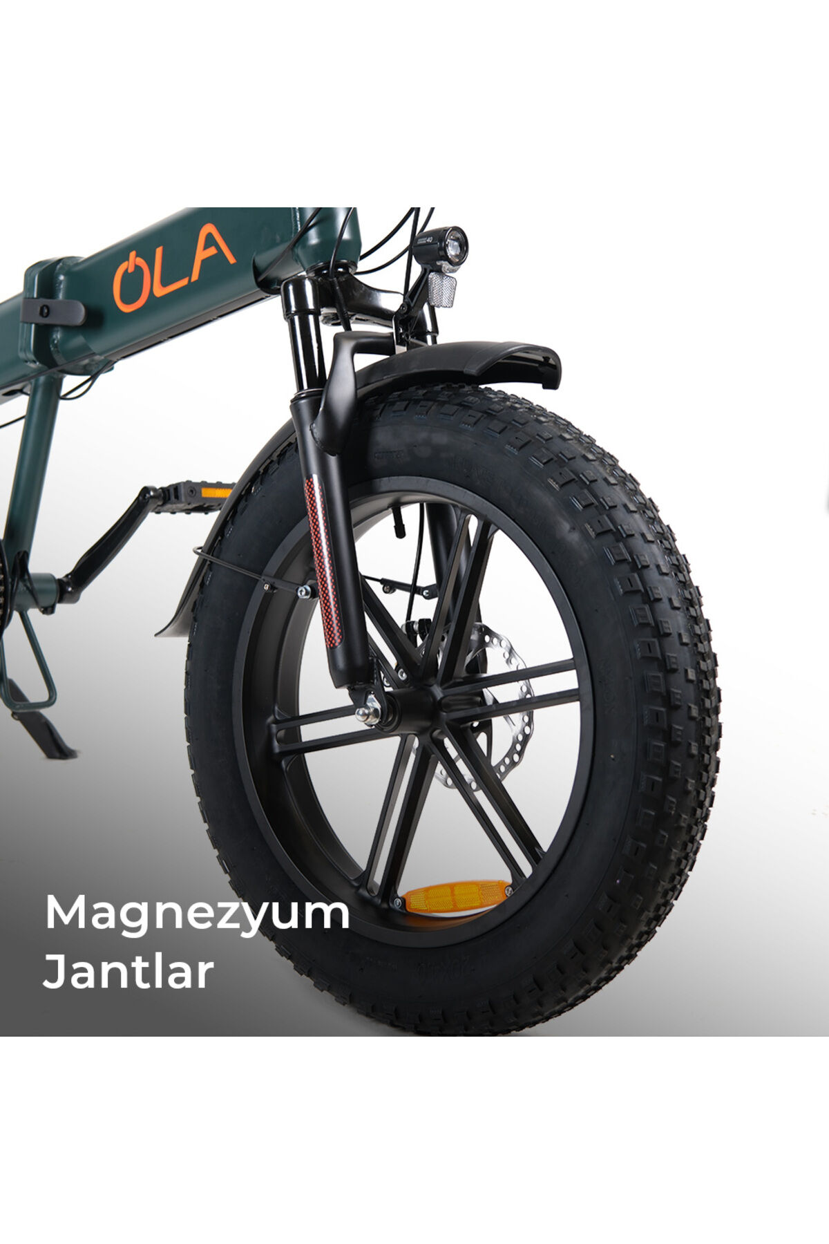- ÜRÜNÜN GARANTİ BAŞLANGICI İÇİN SİZE EN YAKIN YETKİLİ SERVİSTE KURULUM YAPTIMANIZ GEREKMEKTEDİR.; SERVİS DIŞINDA AÇILAN KOLİLER GARANTİ KAPSAMINDAN ÇIKMAKTADIR.; 2 yıl garanti süresi ile güvenle kullanım sunar.; - 120 kg taşıma kapasitesiyle geniş kullanıcı yelpazesine hitap eder.; - Kolayca katlanabilme özelliği sayesinde pratik depolama imkanı sağlar.; - 25 km/saat maksimum hızıyla şehir içi ulaşım için idealdir.; - 20 inç jant boyutu, konforlu ve stabil bir sürüş deneyimi sunar.; - 45 ila 50 kilometre arasında değişen menzili ile uzun mesafeli yolculuklarda bile rahatlıkla kullanılabilir.; - Katlanabilir bisiklet tipi, dar alanlarda kolayca taşınabilirliği artırır.; - Haki rengiyle şık ve modern bir görünüm sergiler.; - Web color yeşil tonuyla dikkat çekici bir tasarıma sahiptir.; - Şarjlı kullanım süresi olarak 4 ila 6 saat arası çalışma kapasitesine sahiptir; böylece enerji tüketimini optimize eder.; Kurulum ücretli olup 500 TL.; ile sınırlandırılmıştır.