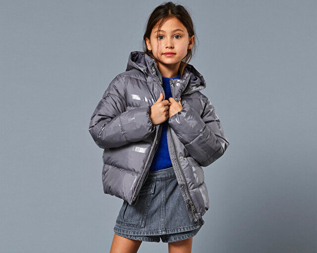 Only Kogmercedes Life Aop Puffer Çocuk Günlük Mont 15327417-DECEMBER-SKY Gri