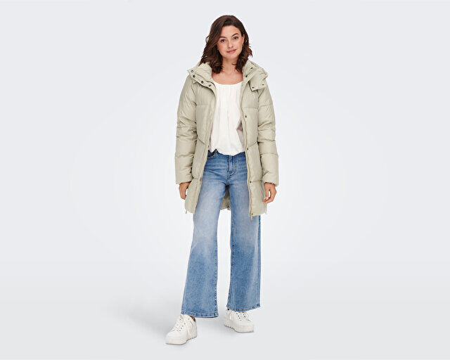 Only Onlalicia Down Hood Coat Otw Kadın Günlük Mont 15270623-CROCKERY Bej
