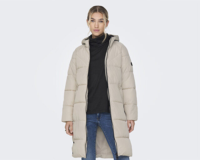 Only Onlamanda Long Puffer Coat Kadın Günlük Mont 15233425-PUMICE-STONE Krem