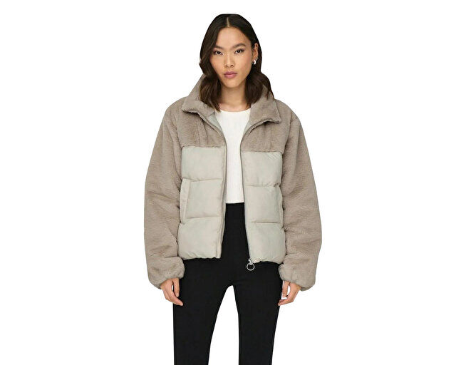 Only Onlwanja Fur Puffer Mix Kadın Günlük Mont 15292945-MOONBEAM Krem