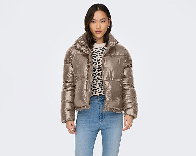 Only Onlysky Short Puffer Cc Otw Kadın Günlük Mont 15292628-WEATHERED-TEAK Kahverengi