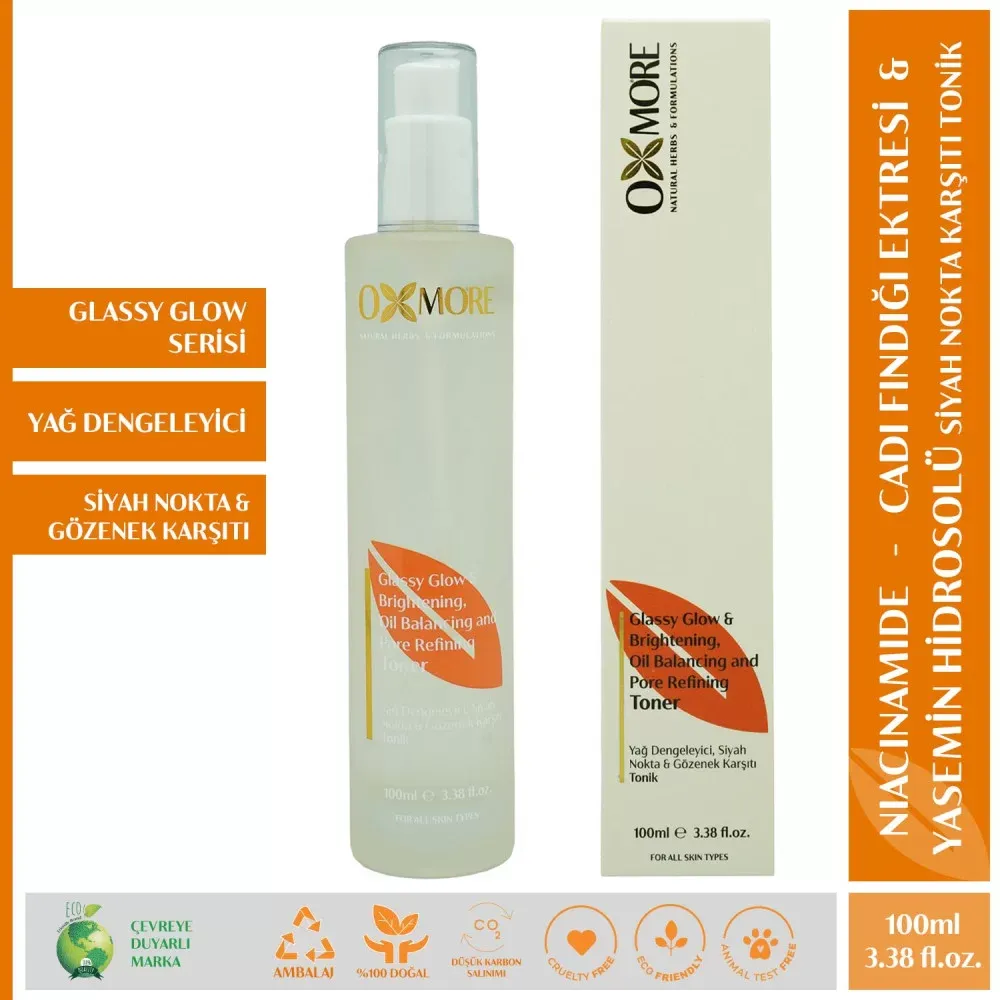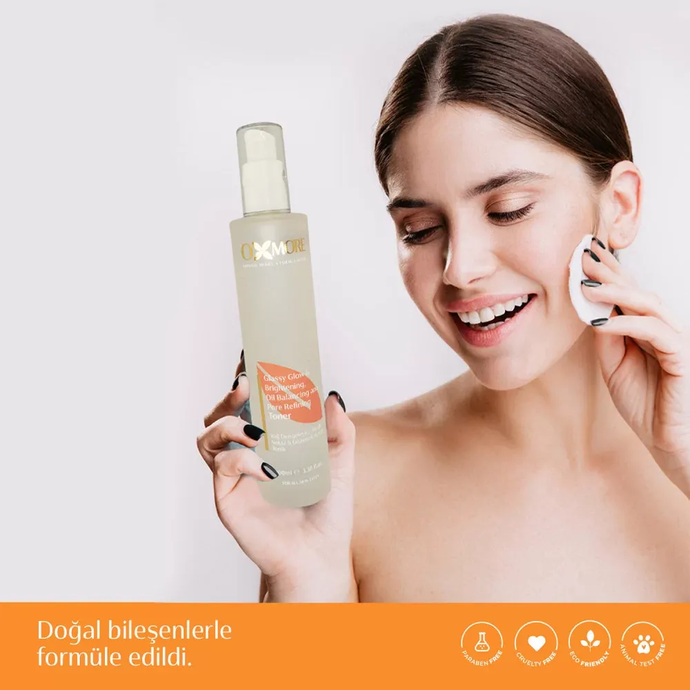 Neme doymuş, rahatlamış, kolajen ve keratin ile güçlenmiş dipdiri bir cilt için OXMORE Siyah Nokta ve Gözenek Karşıtı Tonik’i Glassy Glow Brightening Seti ile birlikte ve düzenli kullanın. Daha ilk kullanımda tertemiz bir cildin ve sağlıklı ışıltının keyfini yaşayın. %100 doğal içerikli OXMORE tonik ile tüm günü ve tüm geceyi ferah bir ciltle karşılayın.