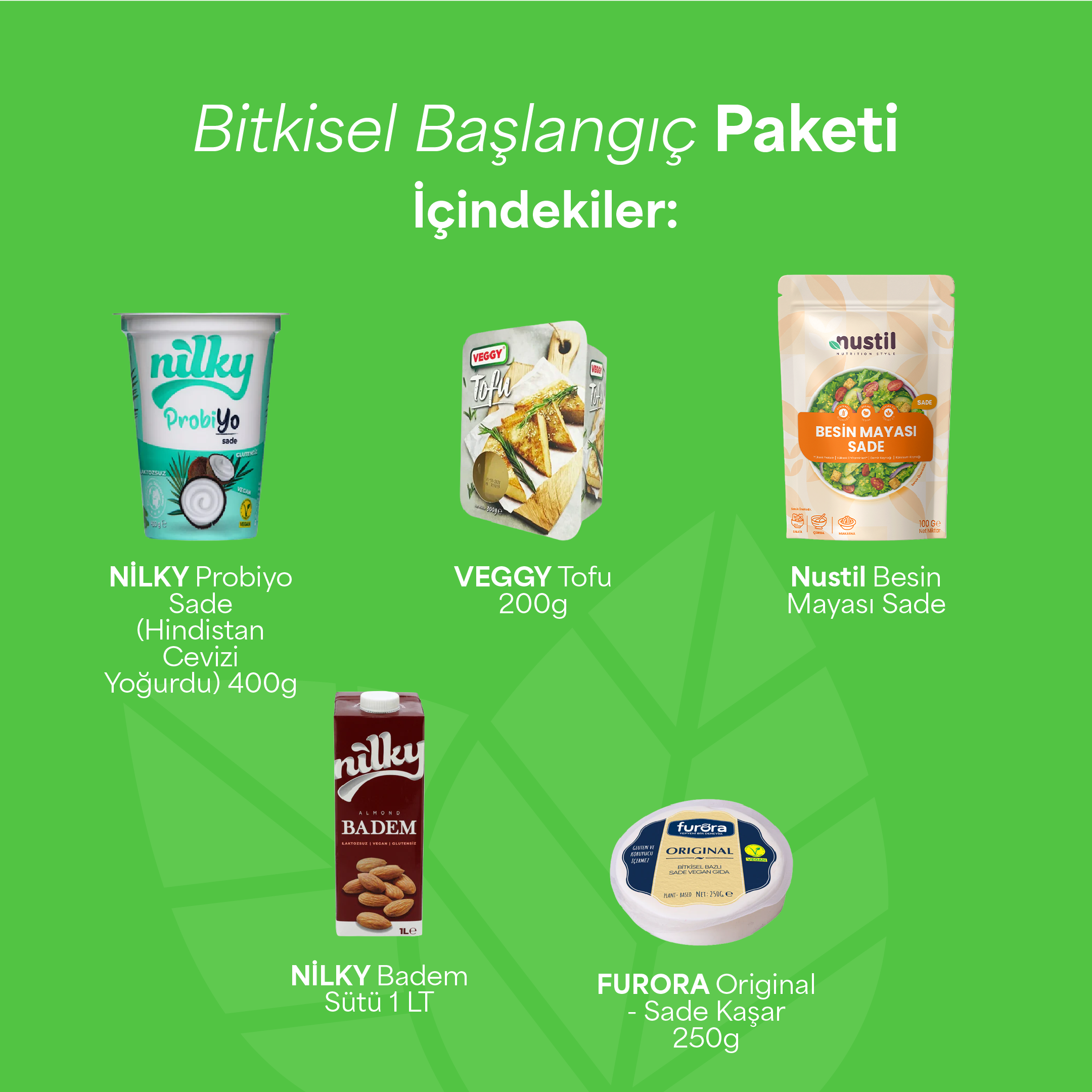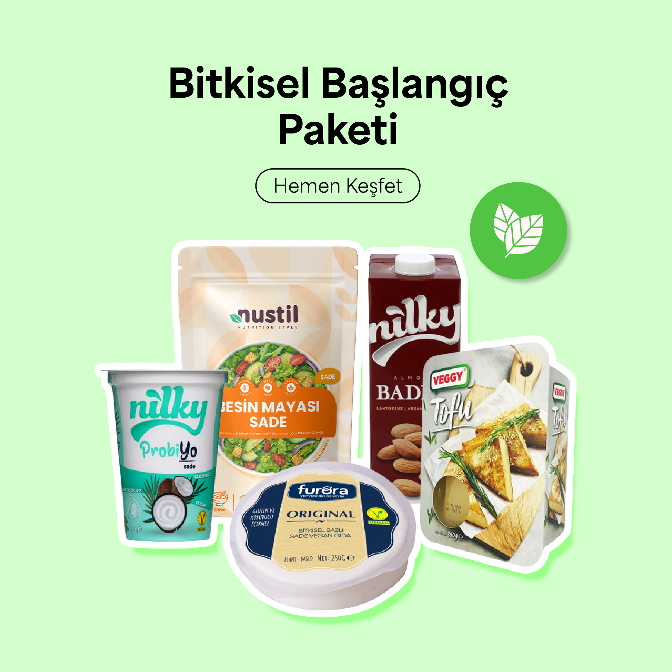 Bitkisel Başlangıç Paketi, günlük tariflerinde bitkisel ve vegan seçenekleri bir araya getiriyor. Kahvaltıdan atıştırmalığa, mutfakta her an yanında olacak lezzetler burada.