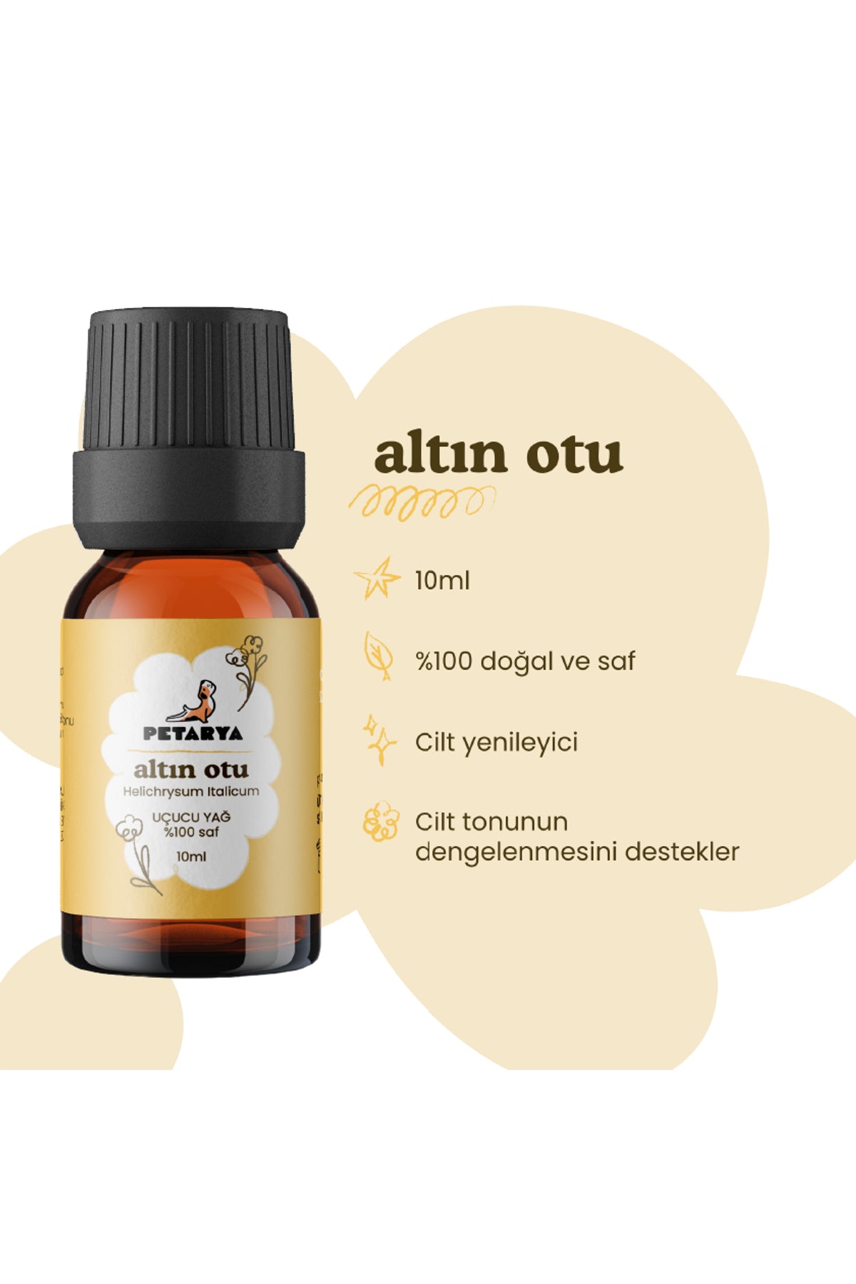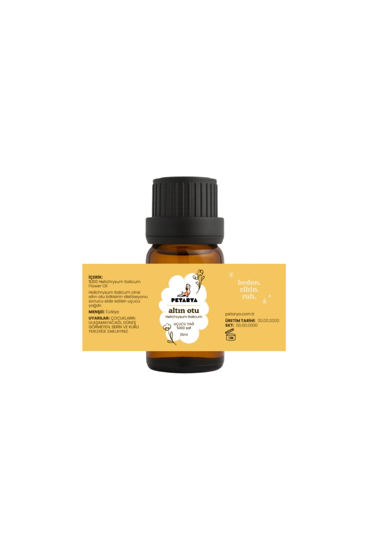 Altın Otu Uçucu Yağı %100 saf ve uçucu | 10 ml Altın otu, halk arasında “ölmez çiçek” (immortelle) veya “sarı çiçek” olarak da bilinir. Bu ismi, kuruduktan sonra bile şeklini ve sarı rengini uzun süre koruyabilme özelliği sayesinde almıştır. Aynı zamanda, cilt yenileyici ve yaşlanma karşıtı etkileri nedeniyle “sonsuz yaşam”ı simgeleyen bitkilerden biri olarak görülür. Yüksek kaliteli ve saf bir uçucu yağdır. Helichrysum Italicum bitkisinin çiçeklerinden Türkiye menşeli olarak buhar distilasyonu yöntemiyle üretilir. İçeriği Nedir? Helichrysum Italicum Flower Oil (Altın Otu Yağı) Sadece saf altın otu yağı içerir. Katkı maddesi, koruyucu ya da sentetik bileşen barındırmaz. Nasıl Kullanılır? Altın otu yağı güçlü bir uçucu yağdır, bu nedenle mutlaka bir taşıyıcı yağ ile seyreltilerek kullanılması önerilir. 1 yemek kaşığı hindistan cevizi veya jojoba gibi bir taşıyıcı yağa 2-3 damla altın otu yağı ekleyerek karıştır. Bu karışımı özellikle gece rutininde yüz ve boyun bölgene hafifçe masaj yaparak uygulayabilirsin.