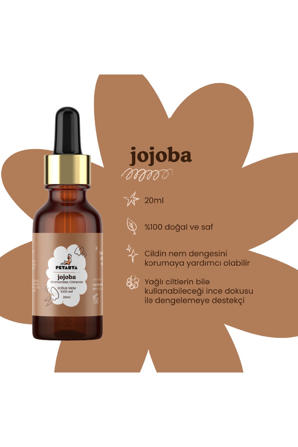 Jojoba Sabit Yağı %100 saf ve sabit | soğuk sıkım | 20 ml Jojoba meyvelerinin soğuk sıkımı ile elde edilen sabit yağdır. Türkiye menşeli olarak üretilmiştir. İçeriği Nedir? %100 Simmondsia Chinensis Oil (Jojoba Yağı) Yalnızca saf jojoba yağı içerir. Katkı maddesi, koruyucu veya sentetik hiçbir bileşen barındırmaz.
