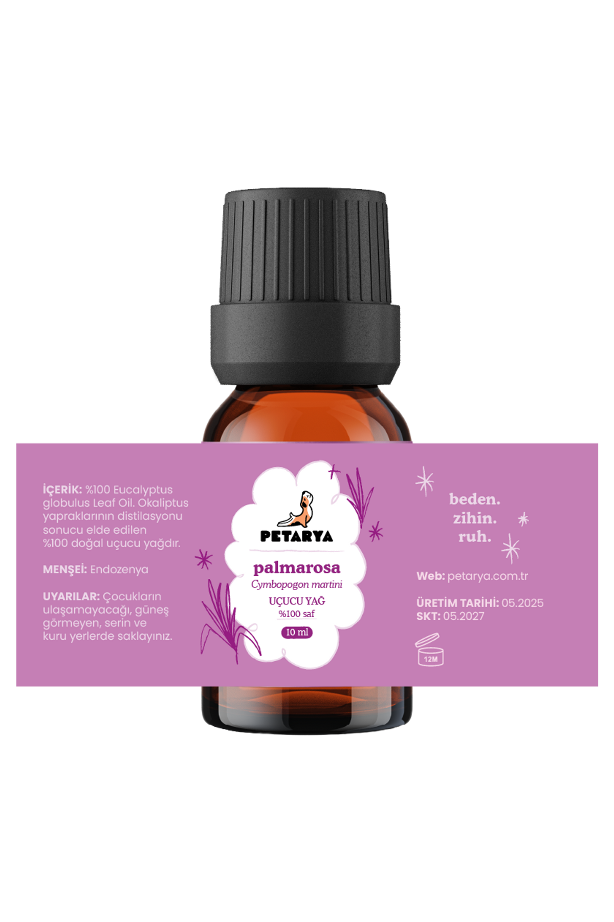 Palmarosa Uçucu Yağı %100 saf ve uçucu | distilasyon | 10 ml Cymbopogon Martini cinsi palmarosa bitkisinin çiçek açmadan önce hasat edilen kuru otlarının distilasyonu sonucu elde edilen uçucu yağdır. Endonezya menşeli olarak üretilmiştir. İçeriği Nedir? %100 Cymbopogon Martini Oil (Palmarosa Yağı) Yalnızca saf palmarosa yağı içerir. Katkı maddesi, koruyucu veya sentetik hiçbir bileşen barındırmaz.
