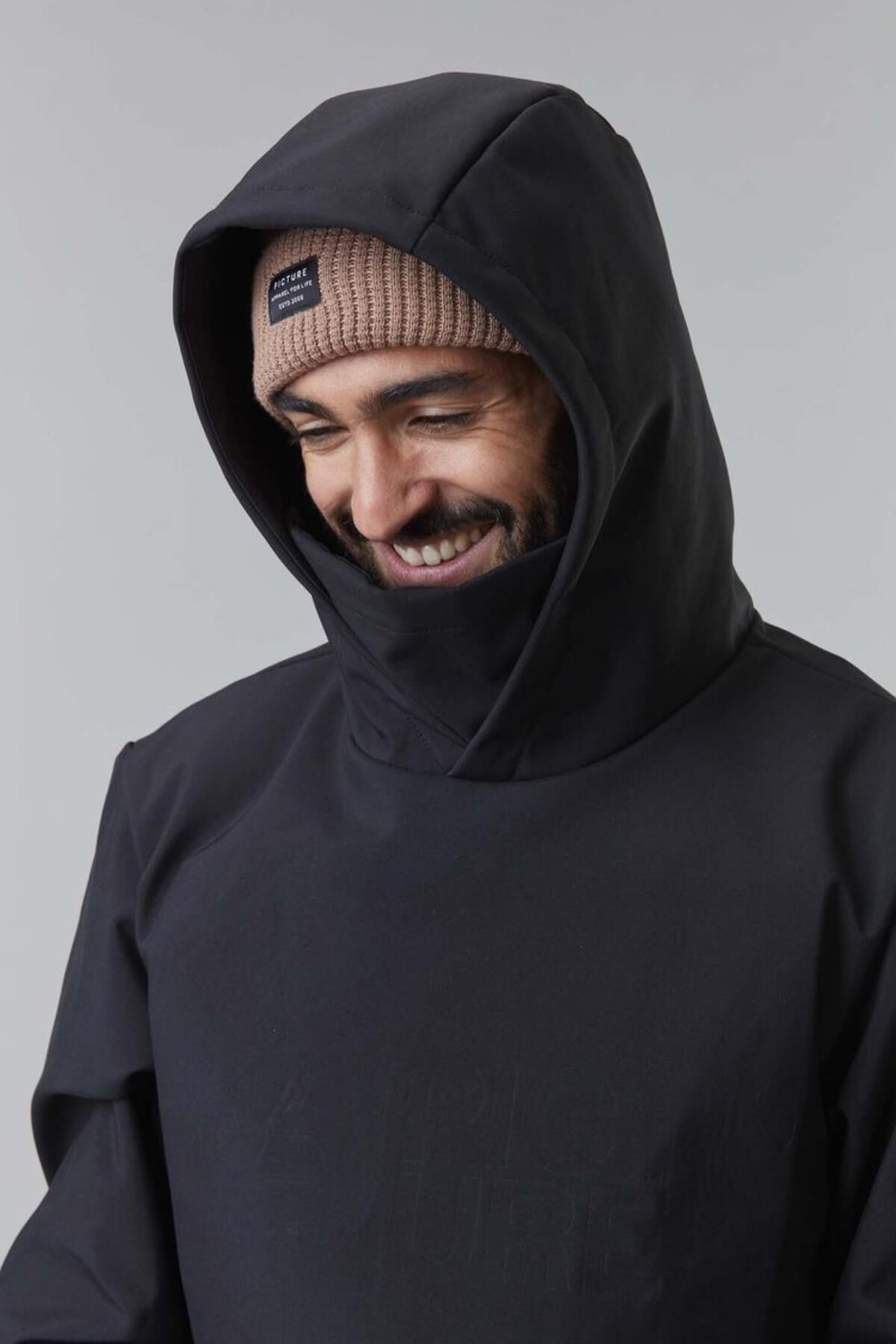 Yapıştırılmış yapağıdan olan 3 katmanlı dış yüzey modern görünüme sahip teknik bir kapüşonlu ile tamamlanmıştır.