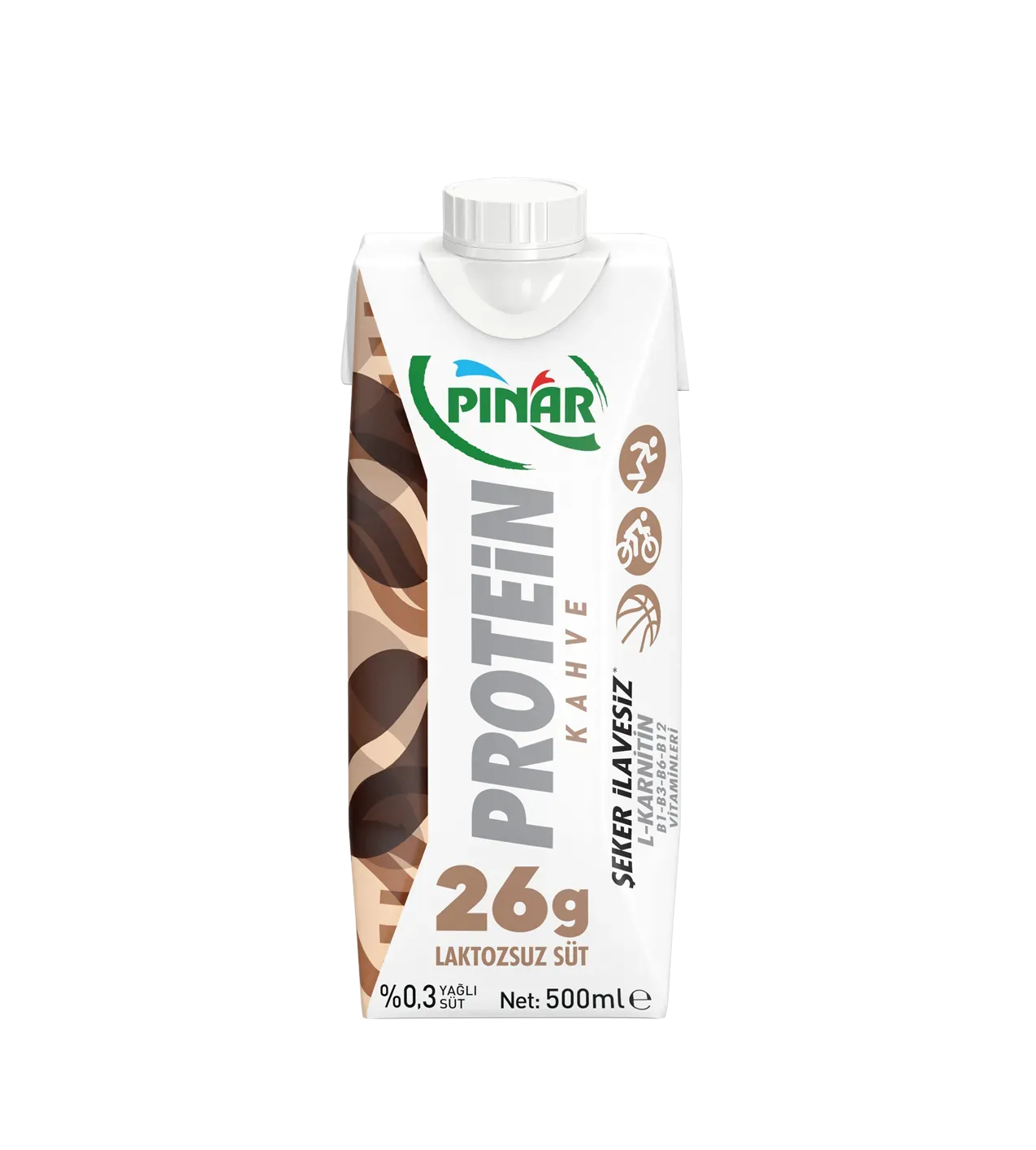 Sütün insan yaşamındaki önemini önemseyen Pınar, süt ve süt ürünlerinin keyifli bir şekilde tüketilmesini sağlayan sağlıklı süt ürünleri sunar. Kahve severler için hazırlanmış olan hafif içimli ve lezzeti Pınar Kahveli Protein Süt ile kendinize keyifli molalar verebilirsiniz. İlave şeker ve tatlandırıcı içermeyen Pınar Kahveli Protein Süt 500 ml spor ve diyet yapan yetişkinler tarafından sıklıkla tercih edilir. Son kullanma tarihine kadar kapağı açılmadan buzdolabında bekleyebilir, kapağı açıldıktan sonra en fazla iki gün içerisinde tüketilmesi önerilir. Pınar Proteinli Süt fiyat bakımından ise diğer pastörize süt fiyatlarına göre farklılık gösterir.