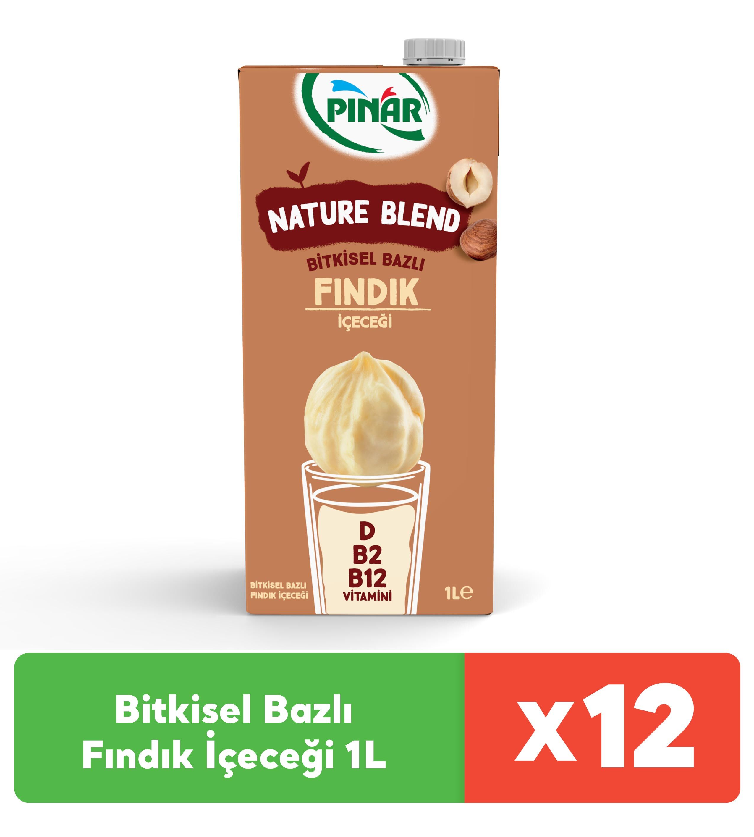 Pınar Nature Blend Bitkisel Bazlı Fındık İçeceği 1 L Vegan Laktozsuz x 12 Adet
