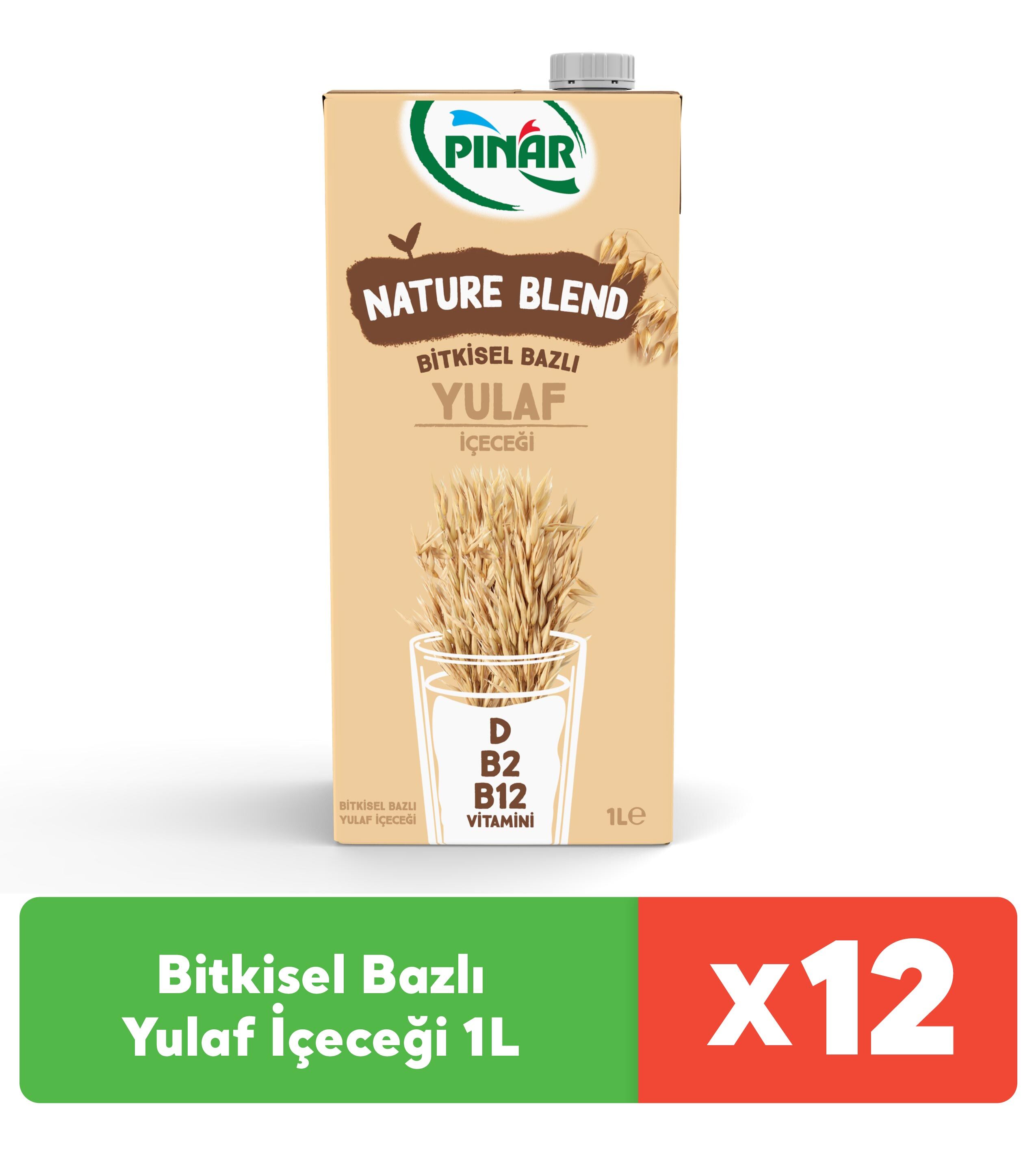 Pınar Nature Blend Bitkisel Bazlı Yulaf İçeceği 1 L Vegan Laktozsuz İlave Şekersiz x 12 Adet