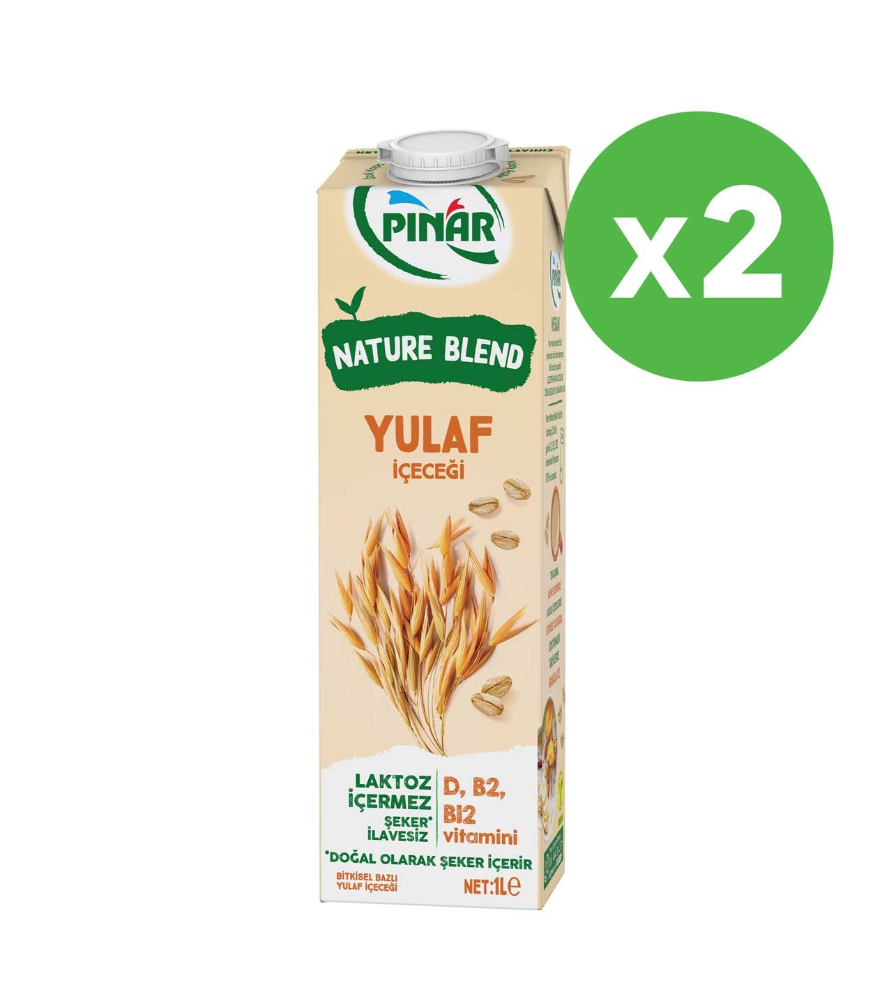 Pınar Nature Blend Bitkisel Bazlı Yulaf İçeceği 1 L Vegan Laktozsuz İlave Şekersiz x 2 Adet