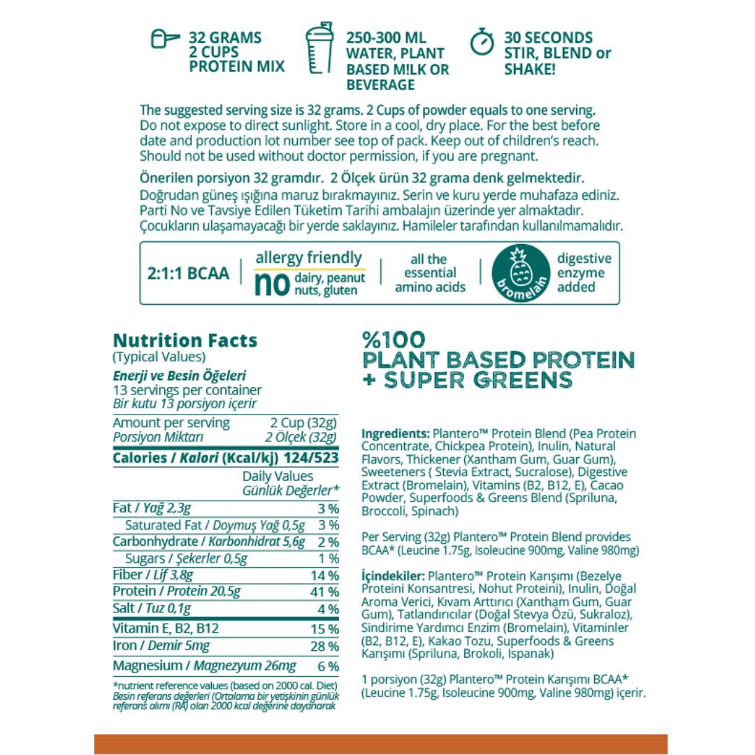 Plantero Double Chocolate Protein Mix ile dengeli beslenme ve protein ihtiyacının karşılanması için en büyük destekçiniz!