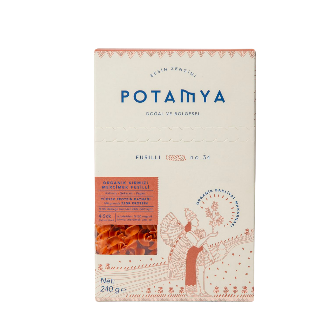 %100 Organik Kırmızı Mercimek unundan özenle hazırlanmış Fusilli.