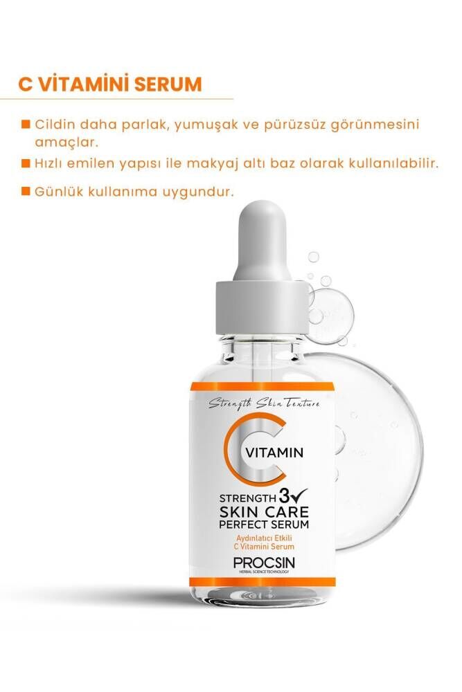 C VİTAMİNİ SERUM ; C vitamini ile güçlendirilmiş içeriğinin desteği ile daha aydınlık, canlı ve eşit bir cilt tonu görünümüne ulaşılmasına yardımcı olmak için geliştirilmiş bir cilt bakım serumudur.; İçeriğinde bulunan Salisilik Asidin (BHA) katkısıyla cildin yağ dengesinin sağlanmasına ve pürüzsüz bir görünüme ulaşılmasına yardımcı olmayı amaçlamaktadır.; C Vitaminin cilde sunduğu bakım desteği ile güneş ışınları başta olmak üzere cildin olumsuz çevresel koşullara karşı korunmasının yanı sıra leke ve ince çizgi oluşumuna yönelik bakıma katkı sağlamayı hedeflemektedir.; Makyaj altı baz olarak kullanıma uygun yapısıyla doğal nem dengesine kavuşmuş daha ışıltılı bir cilt görünüm için katkı sağlamaktadır.; ; NASIL KULLANILIR? ; Temizlenmiş cildinize, özellikle gece yatmadan önce birkaç damla serumu parmak uçlarınızla masaj yoluyla cildinize yedirerek uygulayınız.; C vitamini serumu gün içinde kullanmayı tercih ederseniz sonrasında güneş kremi ile cildinizi desteklemenizi öneriyoruz.; Tüm cilt tipleri için kullanıma uygundur.; ;