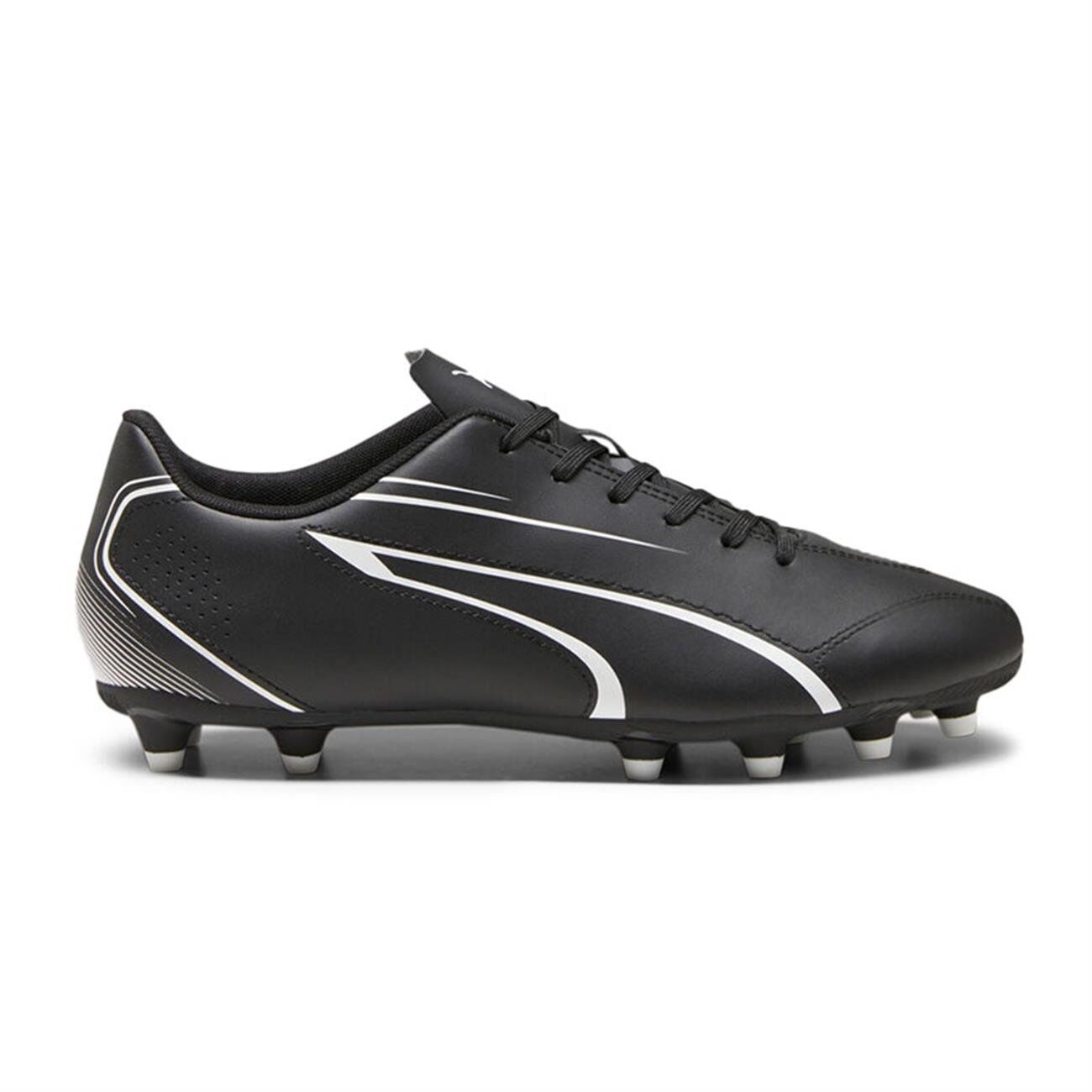 Puma Vitoria FG/AG 107483-01, hem doğal çim (FG) hem de suni çim (AG) zeminlerde yüksek performans sunmak üzere tasarlanmıştır. Klasik siyah görünümünün altında güçlü tutuş sağlayan çivi düzeni, hafif sentetik üst yüzey ve konfor odaklı iç yapı ile birleşerek maç boyunca maksimum kontrol sağlar. Hem amatör hem de düzenli futbol oynayanlar için ideal bir tercihtir.