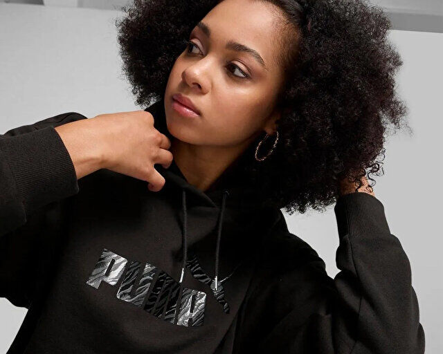 Puma Ess+ Animal Hoodie Fl Kadın Günlük Sweatshirts 68149201 Siyah