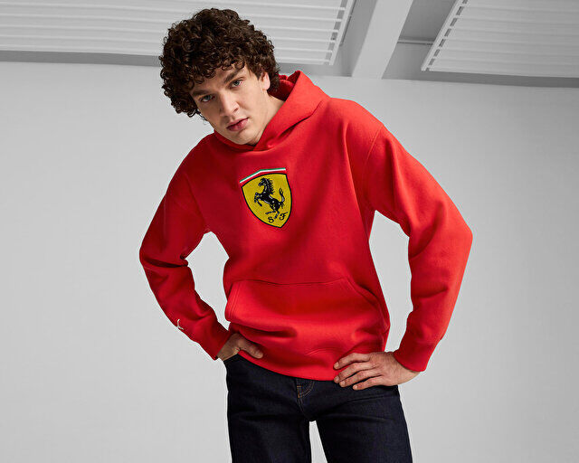 Puma Ferrari Race Bigshield Hdie Erkek Günlük Sweatshirts 62705402 Kırmızı