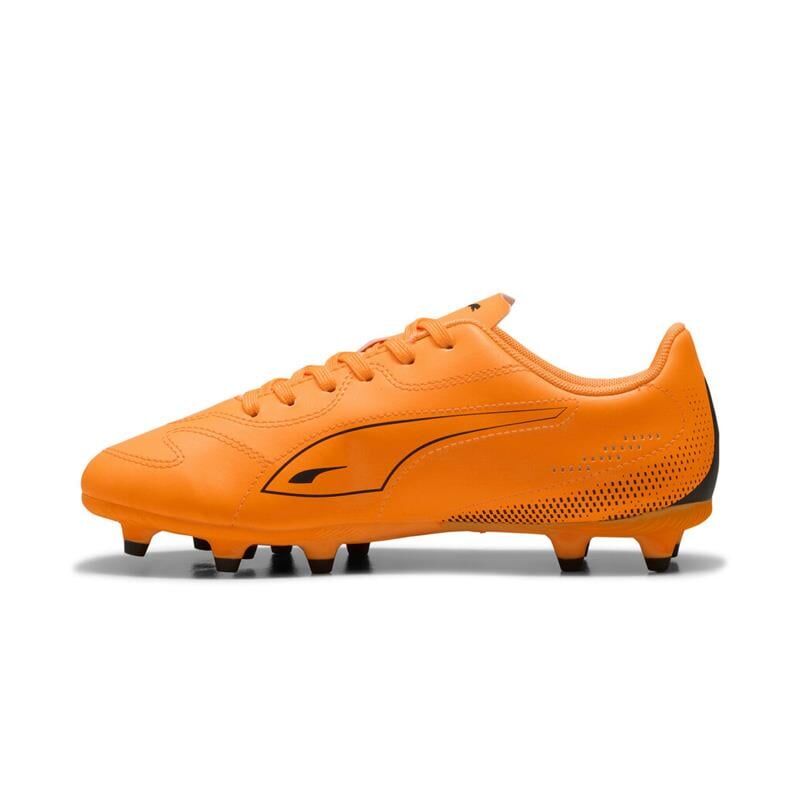 Puma Vitoria II FG/AG Jr, hem doğal çim (FG) hem de suni çim (AG) zeminlerde üst düzey performans sunmak için tasarlanmış bir çocuk futbol ayakkabısıdır. Canlı turuncu rengi ve siyah detaylarıyla sahada fark yaratırken, hafif sentetik yüzeyi ve sağlam dış tabanı sayesinde hız ve kontrolü bir araya getirir.