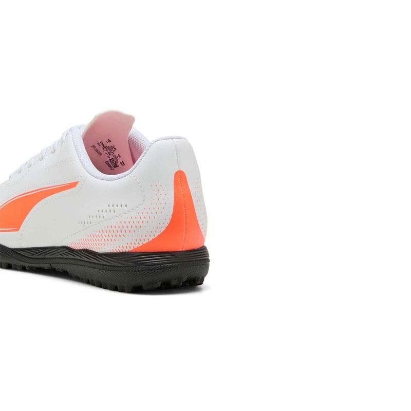Puma Vitoria II TT JR, çocuklar için özel olarak tasarlanmış dayanıklı ve sportif bir futbol ayakkabısıdır. Dinamik beyaz ve enerjik turuncu detaylarıyla sahada fark yaratır. Suni çim (turf) zeminlerde üstün tutuş sağlayan kısa çivili dış tabanı, güvenli performans sunar. Konforlu iç yapısı ve sağlam sentetik üst yüzeyi sayesinde maçlarda ve antrenmanlarda güvenle kullanılabilir.