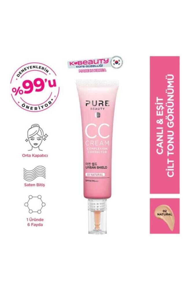 Hafif yapısıyla cilde doğal bir ışıltı veren, ciltteki renk eşitsizliklerini eşitleyen orta kapatıcı Pure Beauty CC Krem içerisinde bulunan Lespedeza Capitata özü sayesinde cildi mavi ışığın zararlı etkilerinden ve SPF 50 koruması sayesinde güneş ışığı hasarlarından korur.; Myrothamnus Flabellifolia Yaprak Ekstresi sayesinde cildi nemlendirir.; Ciltteki fazla sebumu emerek hafif ve ipeksi bir görünüm sağlar, lekeleri kapatarak cilt görünümünü düzenler ve cilt tonunu eşitleyerek cilde parlaklık sağlar.; Kızarıklık problemi olan, lekelenmeye müsait, donuk görünümlü ve ton eşitsizliği yaşayan cilt tipleri de dahil olmak üzere her cilt tipinin kullanımına uygundur.; Tek üründe 6 fayda!1- Cilt görünümünü iyileştirme2- Kusurları gizleme3- Mavi Işık Koruması4- Güneş koruyucu SPF50 PA +++5- Nemlendirici6- Doğal bir ışıltıİçindekiler:Camellia Japonica çiçeği: Güçlü bir antioksidandır ve cildi kirlilikten yüksek oranda korur.; Deniz Kestanesi: Cilt dokusunun elastikiyetini düzenleyerek cildi yenilemeye destek olur.; Myrothamnus Flabellifolia Yaprak Ekstresi: Cildi nemlendirir, canlandırır, yeniler ve hasar görmüş cildi güçlendirmeye yardımcı olur.; Niacinamide: B3 Vitamini olarak bilinen Niacinamide fazla melanin toplanması sonucu oluşan Melonozomların cilde etki etmesini engelleyerek cilde beyazlık ve parlaklık sağlar.; Lekeye meyilli ciltlerde leke açıcı görevi görür.; Lespedeza Capitata özü: Teknolojik cihazlardan yayılan ve cildi yaşlandıran önemli etmenlerden biri olan mavi ışığın sebep olduğu oksidatif stresten cildi korur.; Kullanımı: Temel cilt bakımınızdan sonra yeterli miktarda aldığınız Pure Beauty CC Kremi yüzünüzün merkezinden başlayarak alın, burun ve çene bölgesi olmak üzere göz ile temasından kaçınarak hafif dışa doğru hareketler ile orta ve işaret parmağınızı kullanarak uygulayınız.