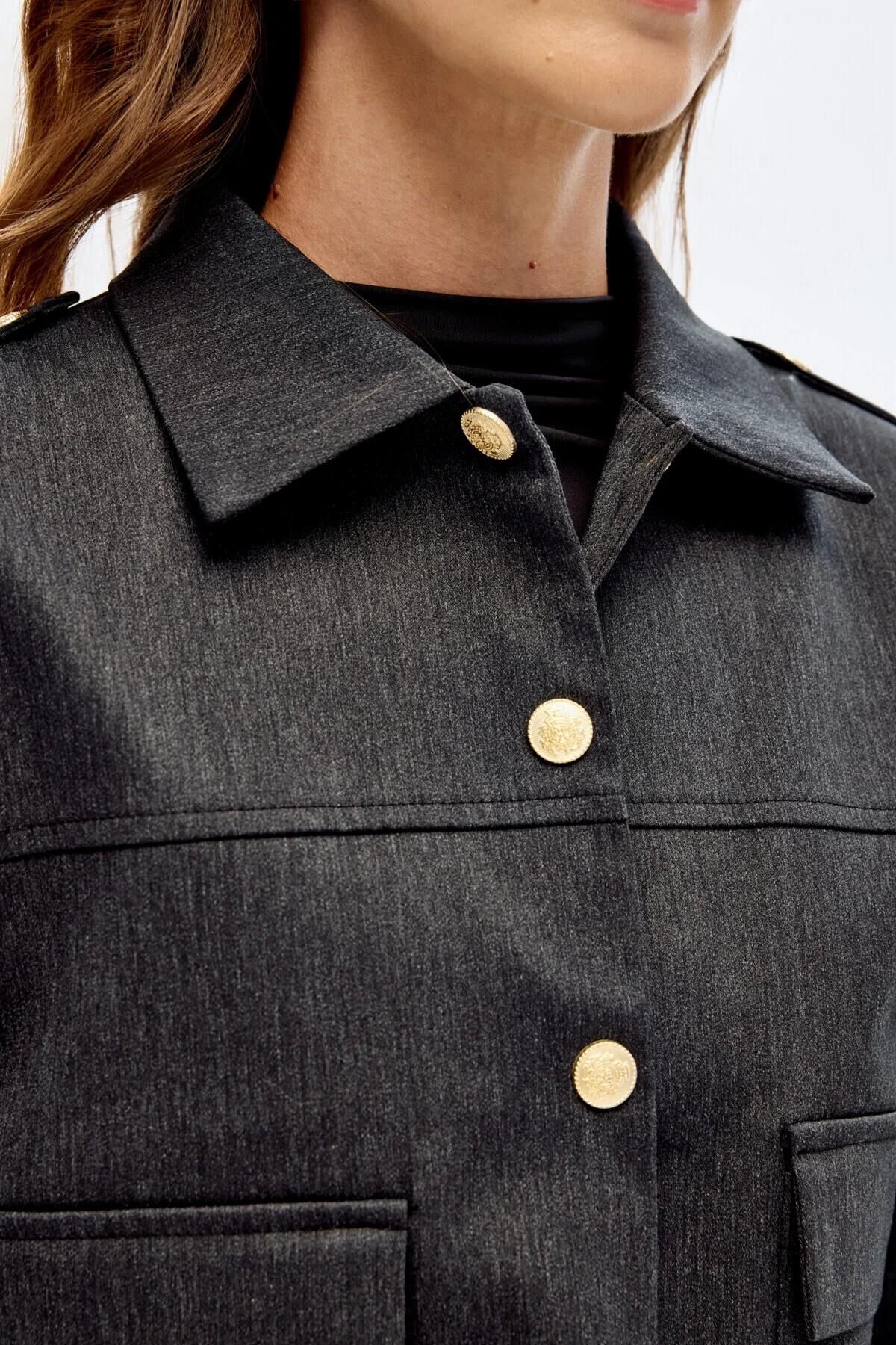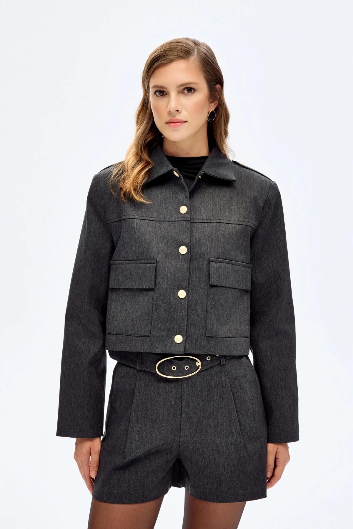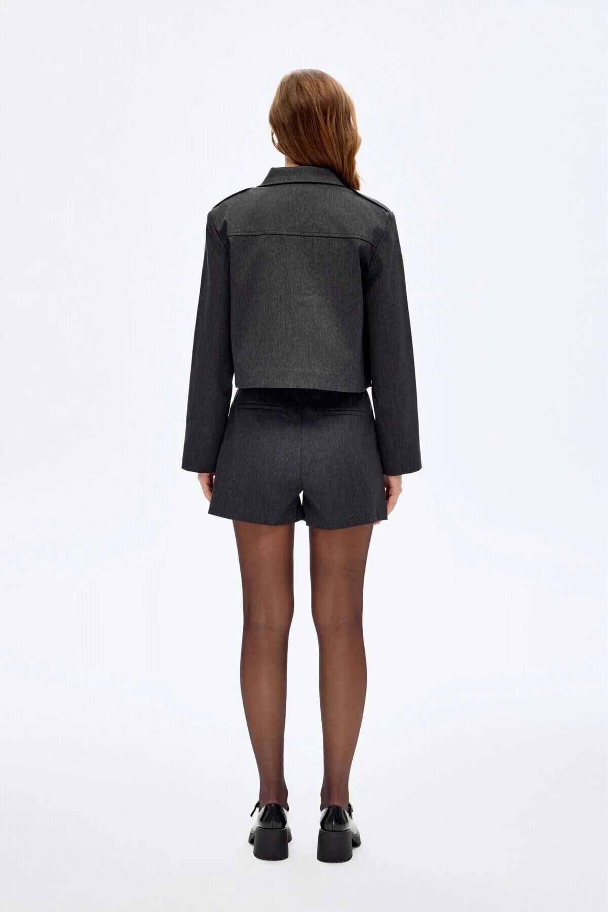 Quzu Apolet Detaylı Kadın Crop Ceket