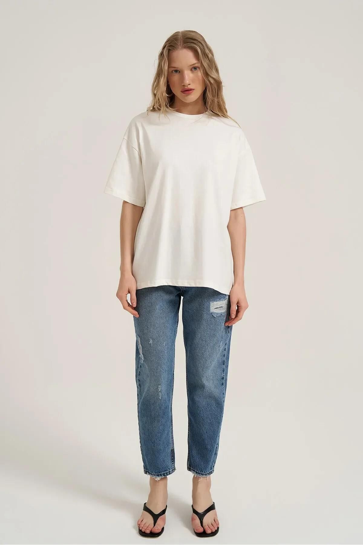 Basic %100 pamuklu oversize tişört. Kumaş Bilgisi : Pamuklu %100 Ürün/Manken Ölçüleri : Ürün Boy Ölçüsü: 69 cm Göğüs: 57 cm / Manken Ölçüleri: Boy:1.74 Bel:61 Göğüs:78 Basen:90 Bedeni:S Yıkama Talimatları : Makinede 30° Yıkayabilirsiniz Gerektiğinde Klorsuz Çamaşır Suyu Konabilir Kurutma Makinesinde , Normal, Düşük Isıda Düşük Isıda Ütüleyiniz Kuru Temizleme , Az Çözücü