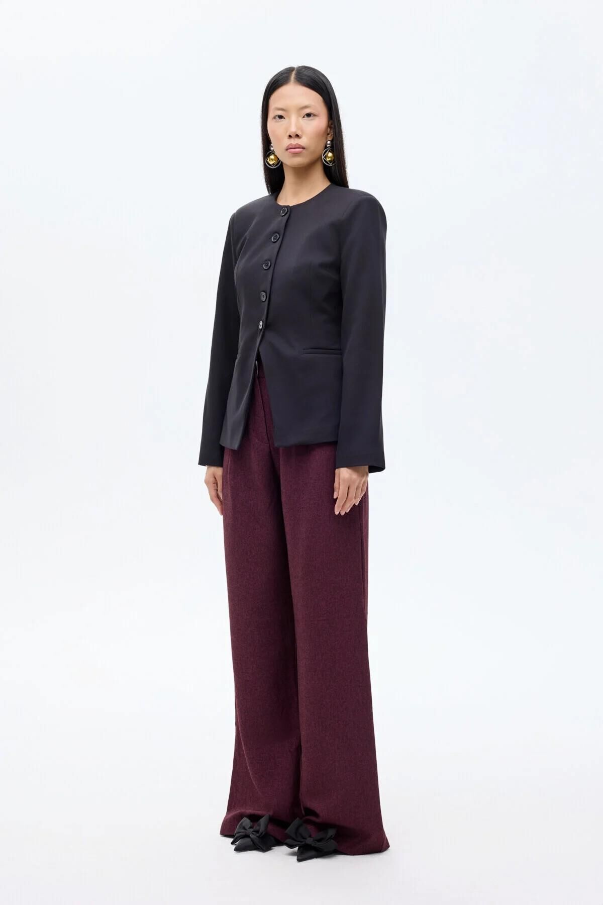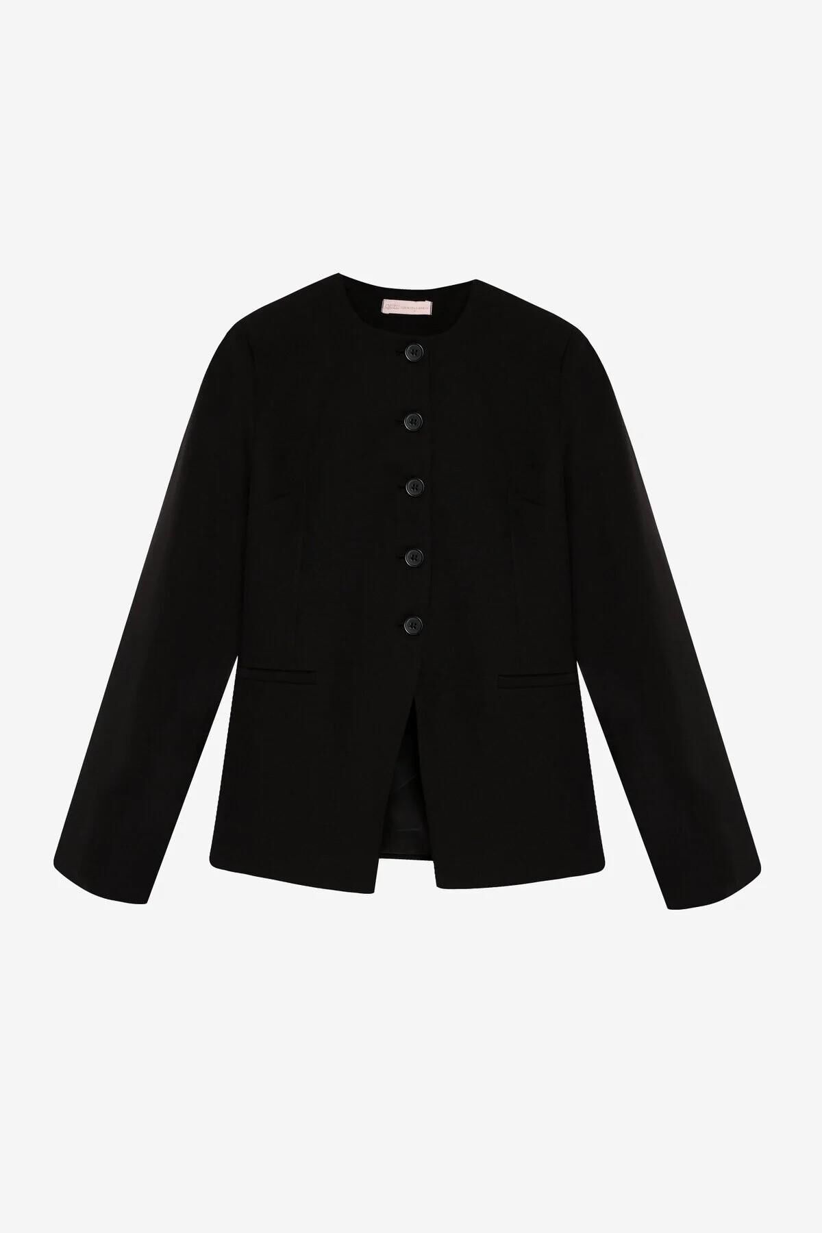 Yuvarlak yaka, önü düğme kapamalı, vücuda oturan formda, uzun kollu, içi astarlı, önden yırtmaç görünümde, kısa ceket. Kumaş Bilgisi : Elastan %5, Polyester %95 Ürün/Manken Ölçüleri : Ürün Boy Ölçüsü: 63 cm Göğüs: 48 cm / Manken Ölçüleri: Boy:1.75 Göğüs:78 Bel:60 Basen:90 Beden:S Yıkama Talimatları : Makinede 30° Yıkayabilirsiniz Gerektiğinde Klorsuz Çamaşır Suyu Konabilir Kurutma Makinesinde , Normal, Düşük Isıda Düşük Isıda Ütüleyiniz Kuru Temizleme , Az Çözücü