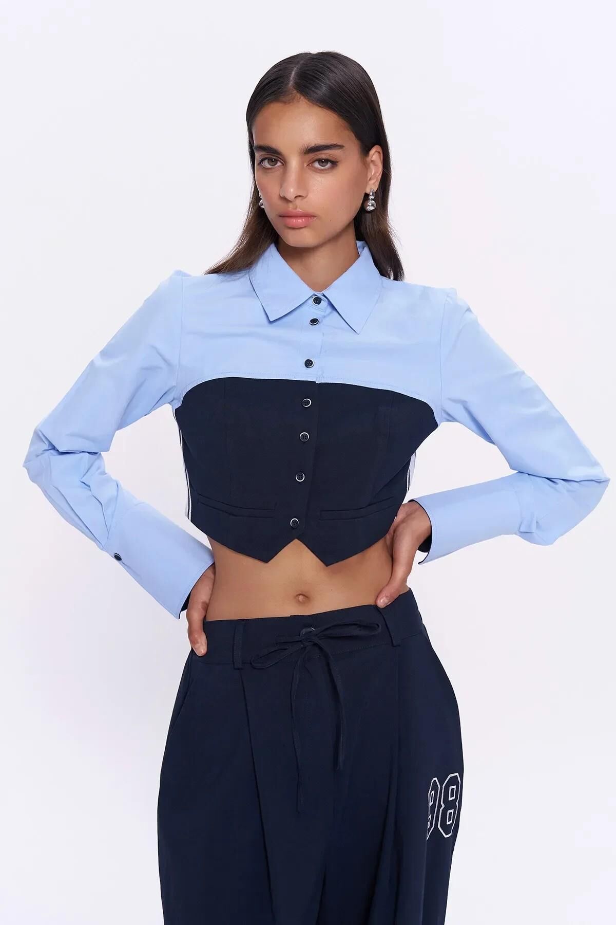 Garni detaylı, ön kısmı düğmeli, uzun kol, crop gömlek. Kumaş Bilgisi : Pamuklu %65, Polyester %35 Ürün/Manken Ölçüleri : Ürün Boy Ölçüsü: 38 cm Göğüs: 47 cm / Manken Ölçüleri: Boy:1.79 Göğüs:80 Bel:60 Basen:88 Beden:S Yıkama Talimatları : Makinede 30° Yıkayabilirsiniz Gerektiğinde Klorsuz Çamaşır Suyu Konabilir Kurutma Makinesinde , Normal, Düşük Isıda Düşük Isıda Ütüleyiniz Kuru Temizleme , Az Çözücü