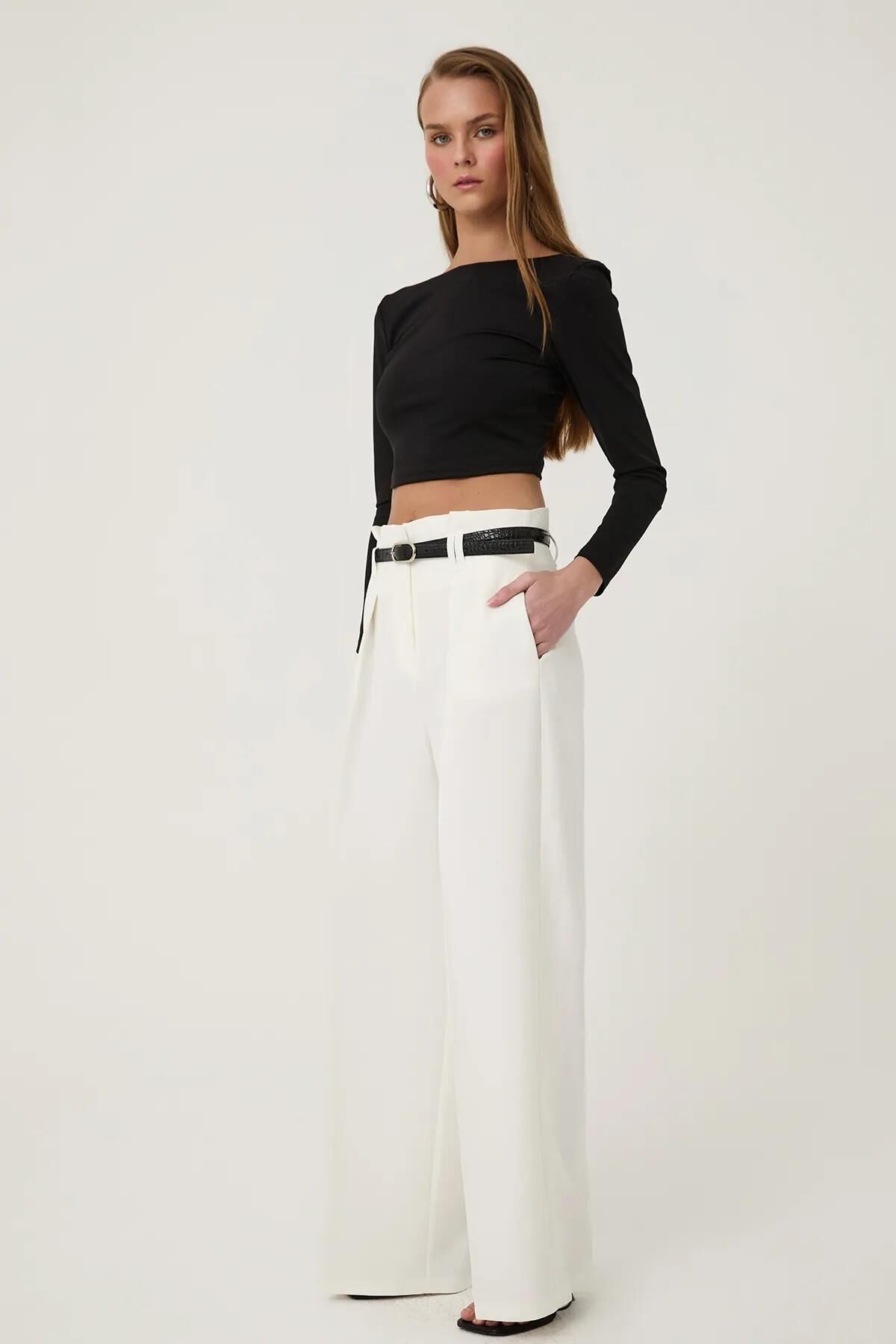 Quzu Kemer Detaylı Kadın Pantolon