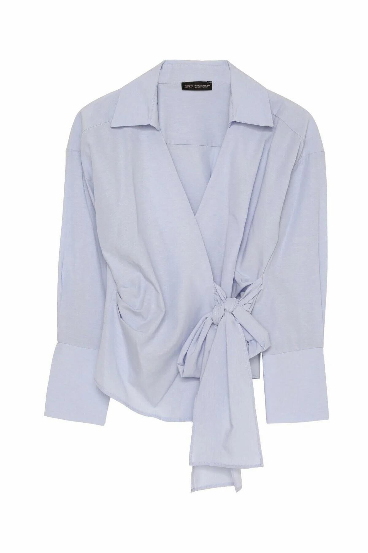 Önden bağlamalı, kruvaze yaka, uzun kollu, manşet detaylı, modern ve şık görünüm sunan klasik kesim bluz. Pamuklu %65, Polyester %35 Makinede 30° Yıkayabilirsiniz Gerektiğinde Klorsuz Çamaşır Suyu Konabilir Kurutma Makinesinde , Normal, Düşük Isıda Düşük Isıda Ütüleyiniz Kuru Temizleme , Az Çözücü