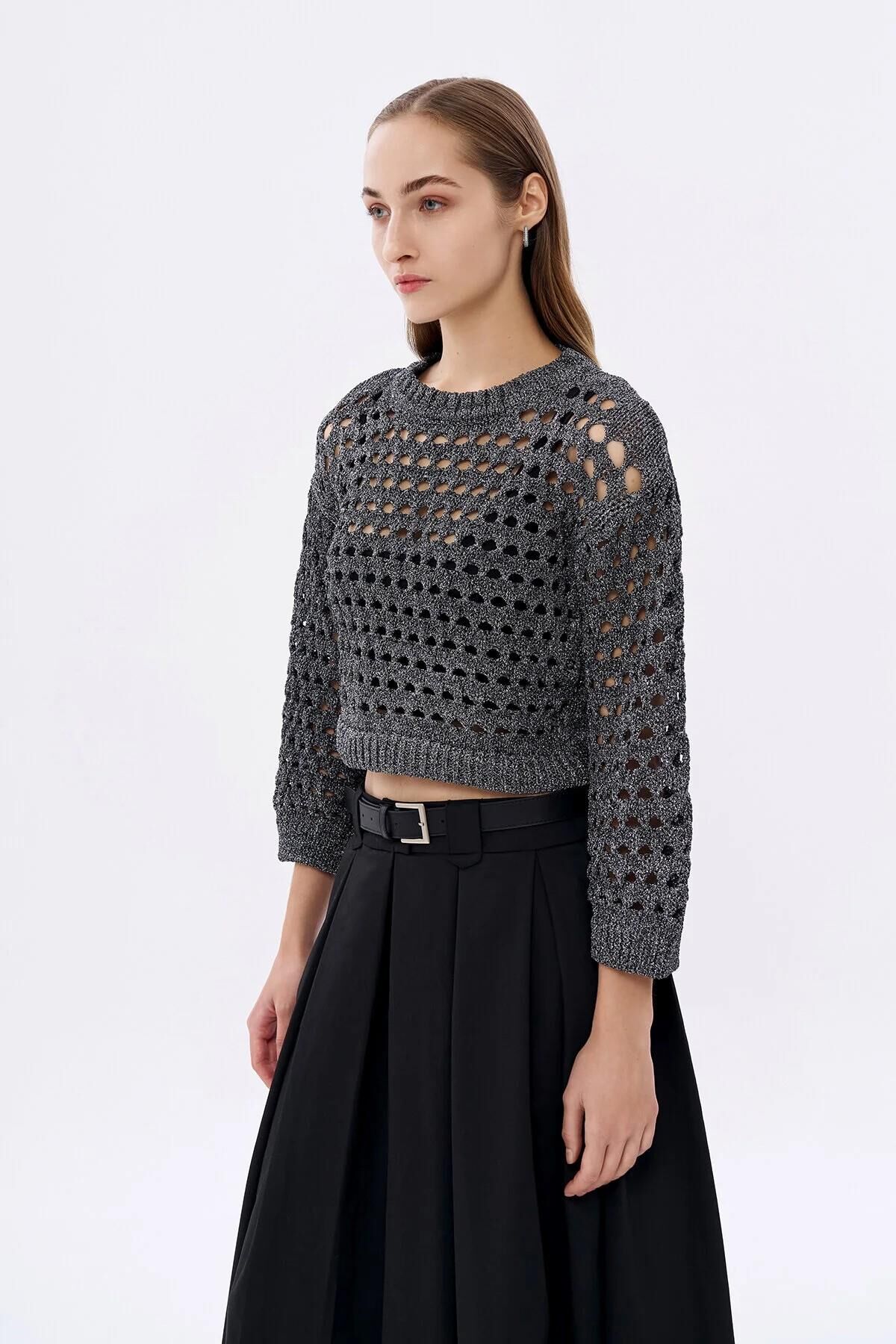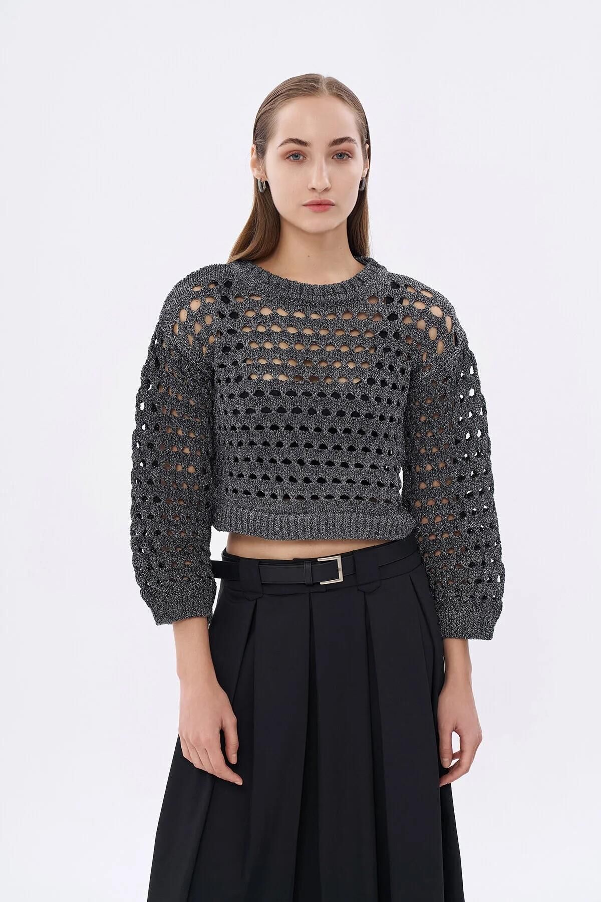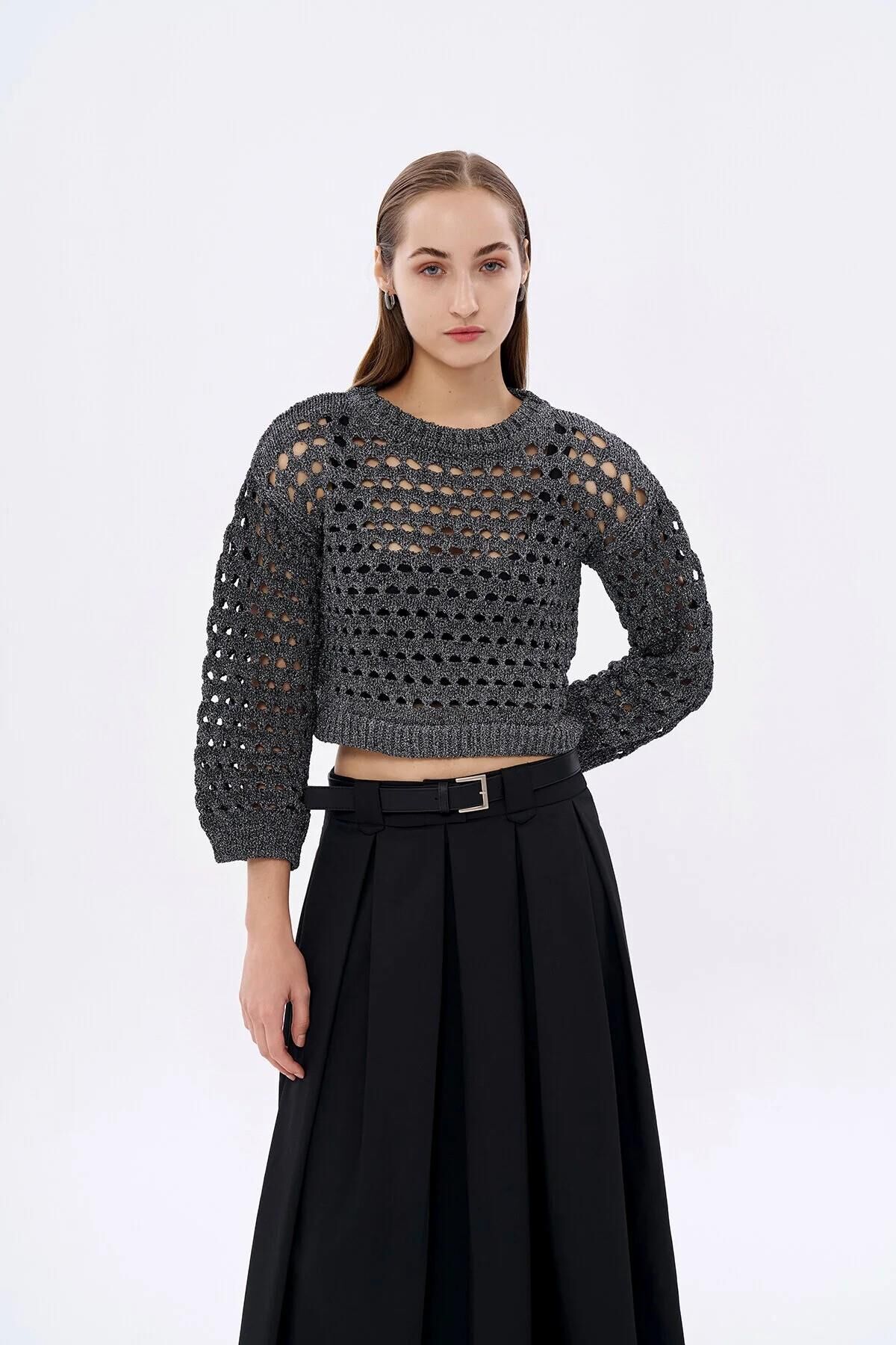 Quzu Sim Detaylı File Kadın Kazak