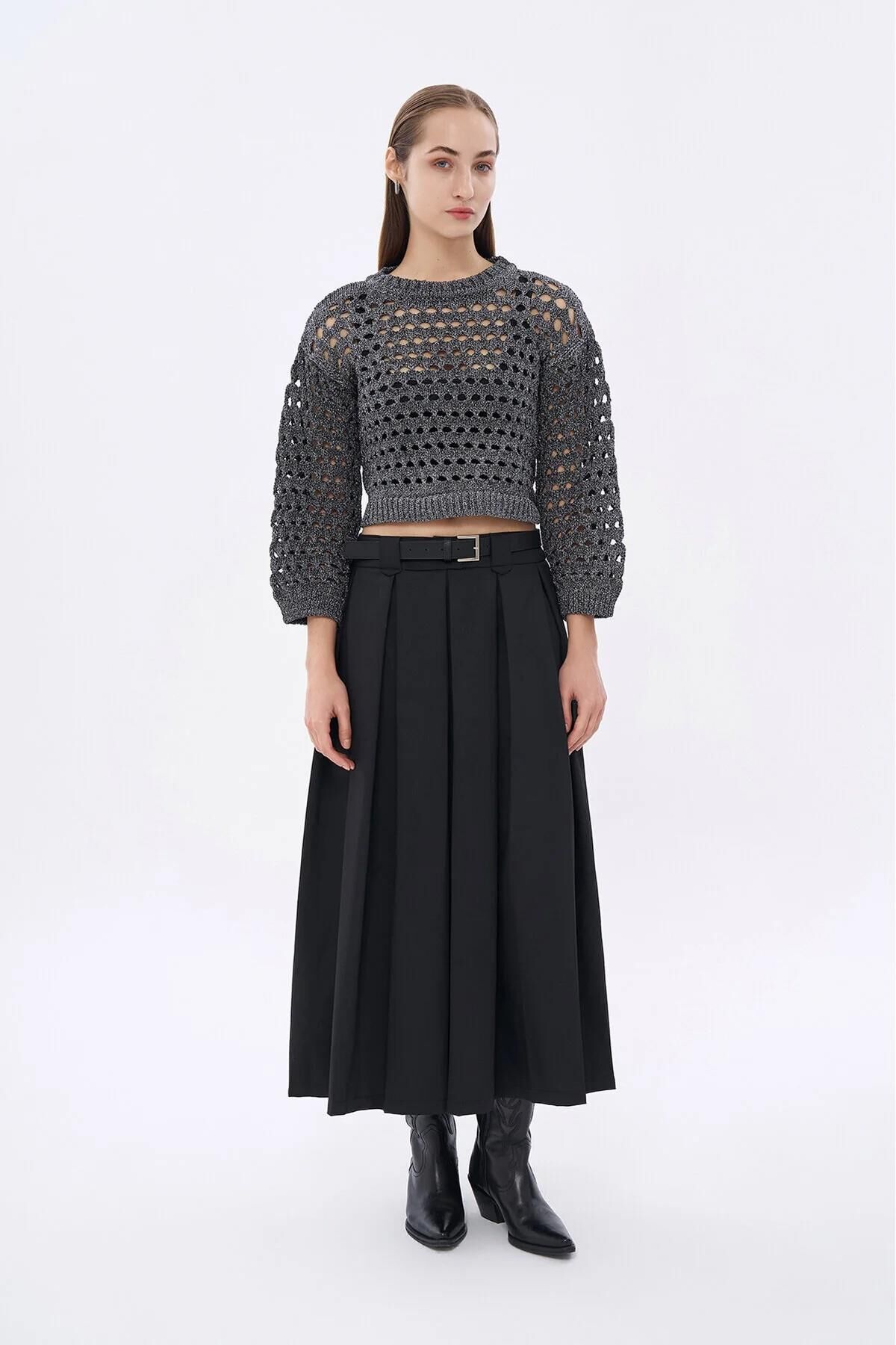 Quzu Sim Detaylı File Kadın Kazak: Şıklığı ve Rahatlığı Bir Arada Sunar