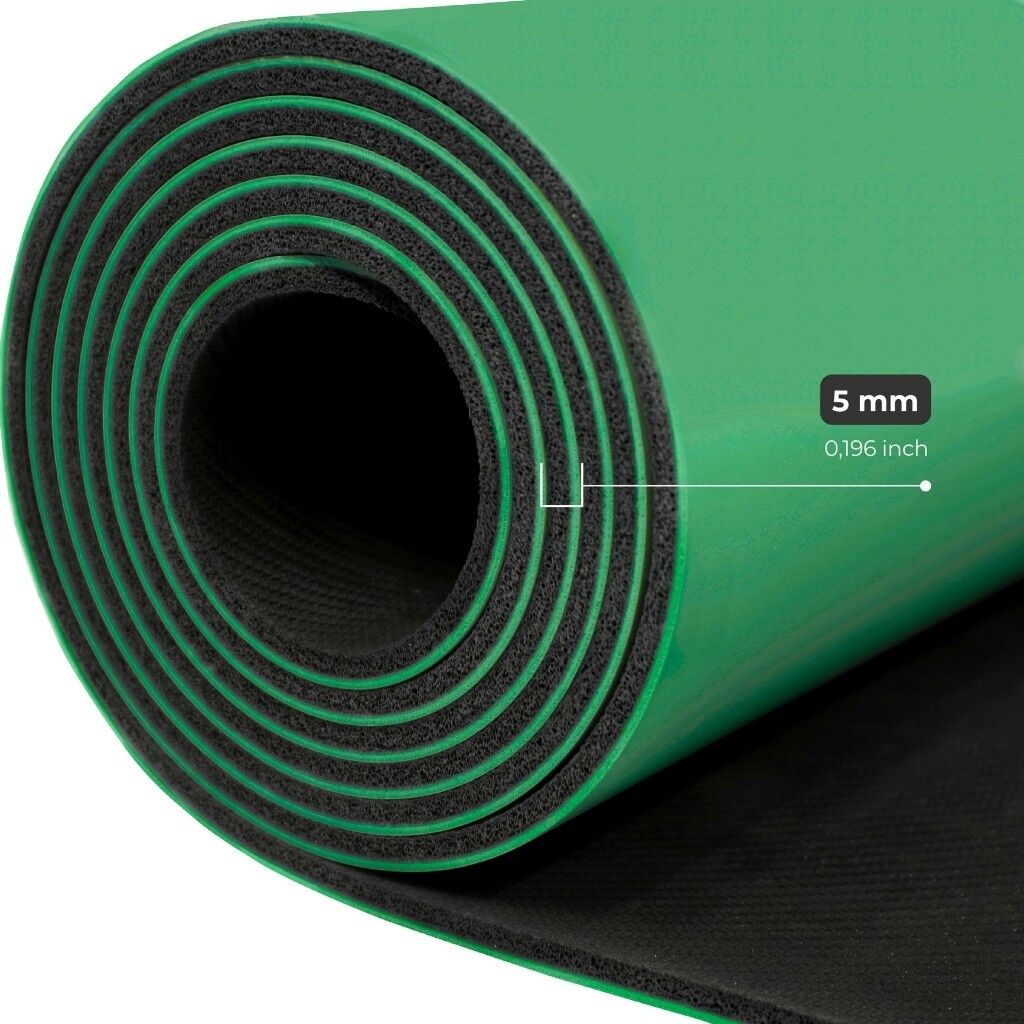 Ürün ÖzellikleriÜrün Renk: YeşilMalzeme: %100 doğal kauçuk, toksik madde içermezKalınlık: 5mm – bel, sırt ve eklem destekliUzunluk: 183 cmGenişlik: 68 cmAğırlık: 2.7 kgYüzey Özelliği: kavrama gücünü artıran, çift çizgi hizalama tasarımıAlt Yüzey: Kaydırmaz özel kauçuk tabanKullanım Alanları: Yoga, pilates, esneme, core ve ev egzersizleriTemizlik: Nemli bezle silinebilir, kir tutmazKullanım Tavsiyesi: Yağlı krem, makyaj gibi ürünlerden arındırılmış ciltle kullanılması önerilir.