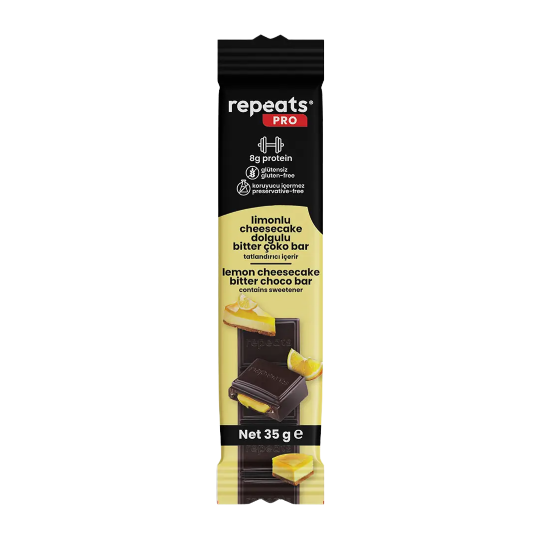 Çalışırken tatlı bir molaya mı ihtiyacın var? Yüksek Proteinli Limonlu Cheesecake Dolgulu Bitter Çoko Bar, yüksek protein içeriği ile enerjini korumana yardımcı olur. Limonlu cheesecake dolgusu ve bitter çikolatanın mükemmel uyumu ile her ısırıkta kremamsı bir lezzet sunar. Tatlından vazgeçmeden hem lezzetli hem de besleyici bir alternatif arıyorsan, bu bar tam sana göre.