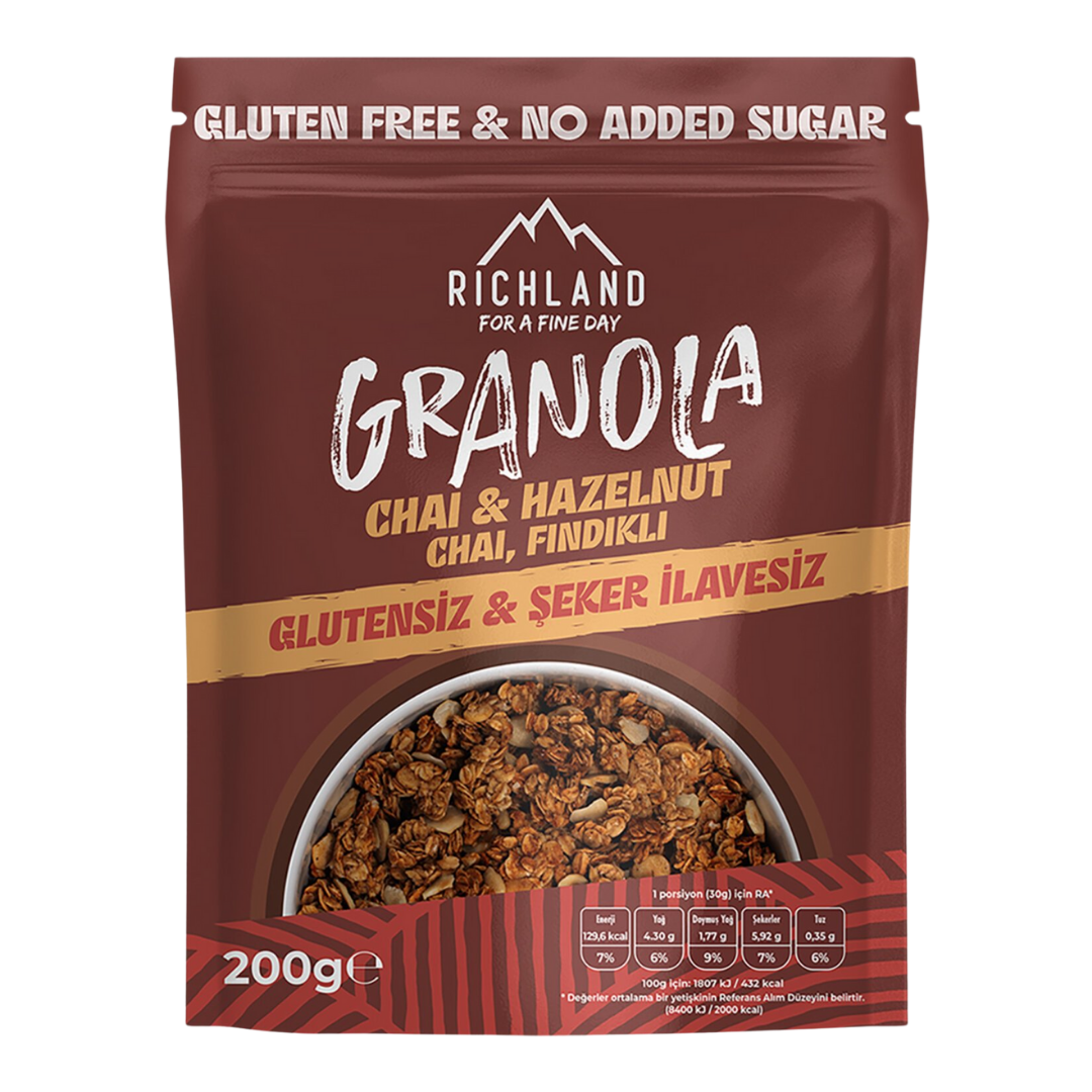 Doğu’nun egzotik chai baharatlarının aroması ile fındığın eşsiz lezzetini bir araya getiren RİCHLAND Chai Fındıklı Granola, güne keyifli ve enerjik başlamanın en pratik yollarından biridir. Çıtır tahıllar, besleyici fındıklar ve chai baharatlarının aromatik dokunuşu sayesinde hem doyurucu hem de benzersiz bir tat deneyimi sunar.
