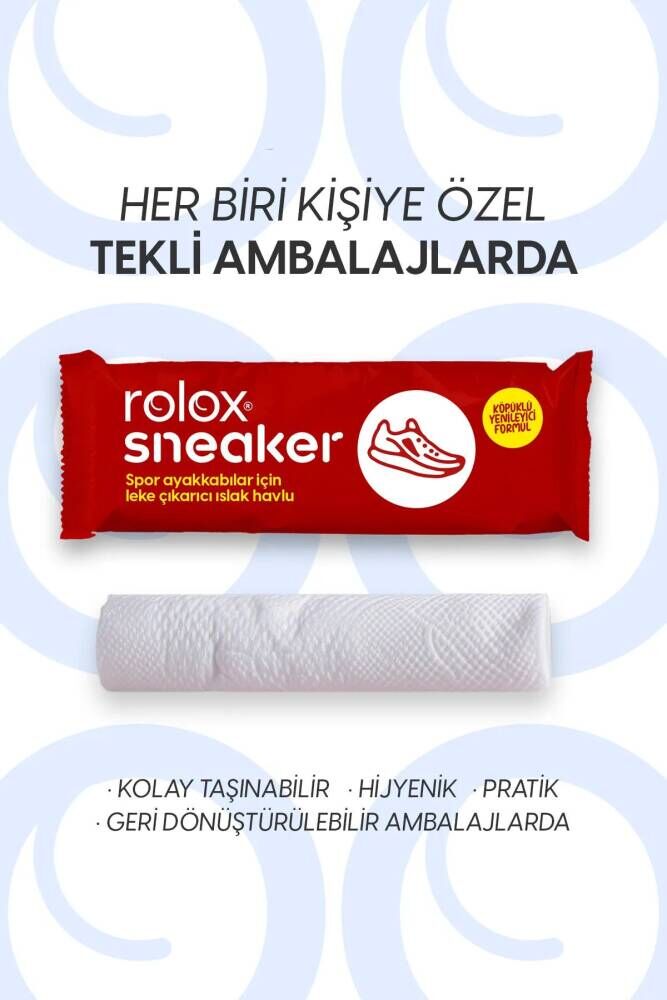 Rolox Sneaker, spor ayakkabılarınızın en iyi dostu! Her renk ve türdeki ayakkabınızı kolayca temizleyebileceğiniz bu leke çıkarıcı ıslak havlu, spor ayakkabınıza kesinlikle zarar vermez. Beyaz sabun kokulu, bol köpüklü ve yenileyen özelliğiyle öne çıkan Rolox Sneaker’ı deri, suni deri ya da kumaş farketmeksizin tüm ayakkabılarınızda kullanabilirsiniz. Pratik tekli ambalajı sayesinde her an yanınızda. taşıyabilirsiniz.