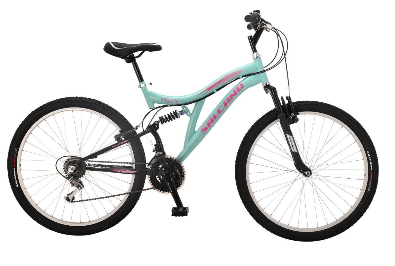 Salcano Helen 26 Jant 21 Vites V-fren Bayan Dağ Bisikleti Çamurluk Hediyeli Mint Yeşili Koyu Pembe