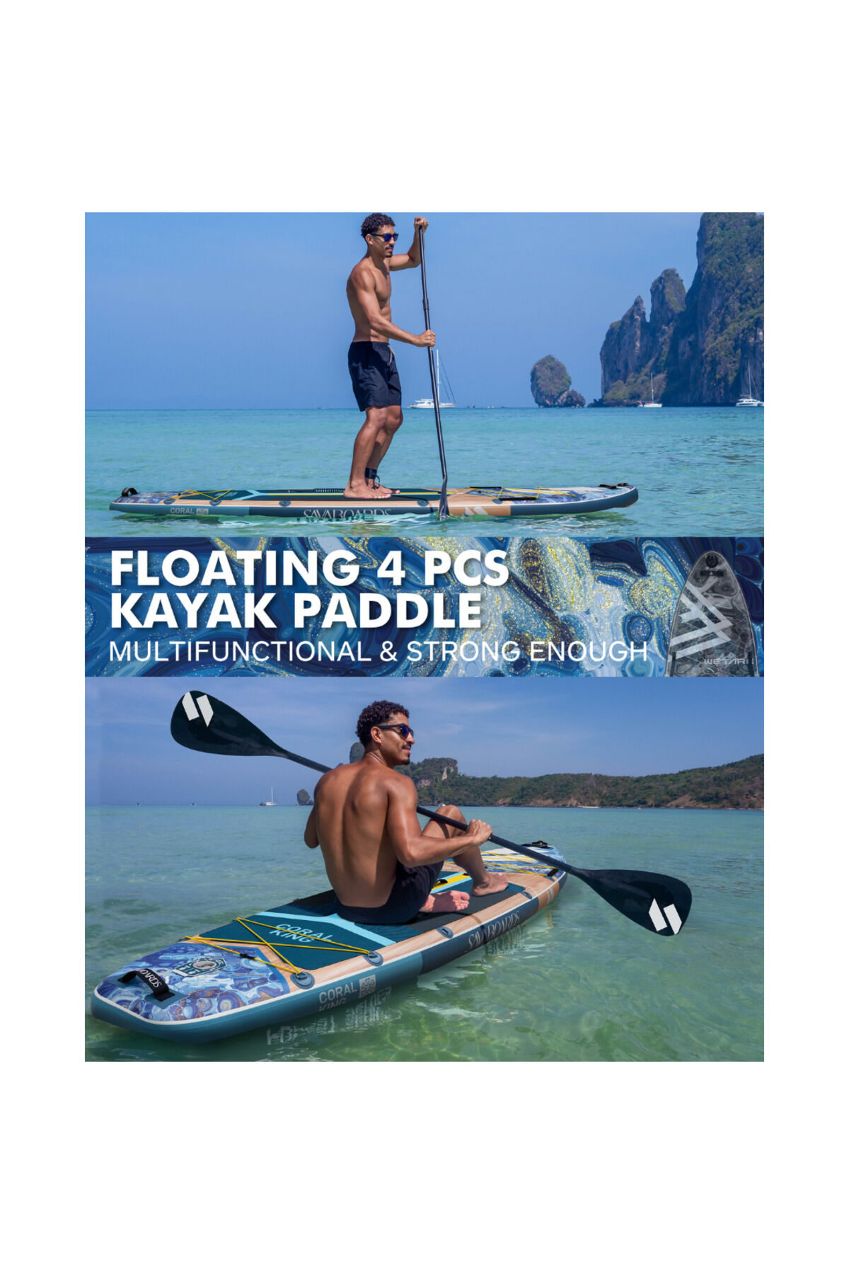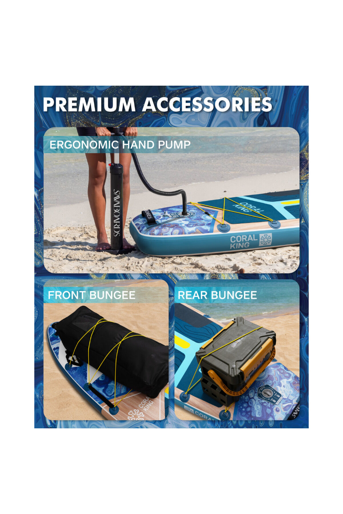 Coral King Premium Şişme Paddle Board SUP Seti 351x89x15 cm - Mavi