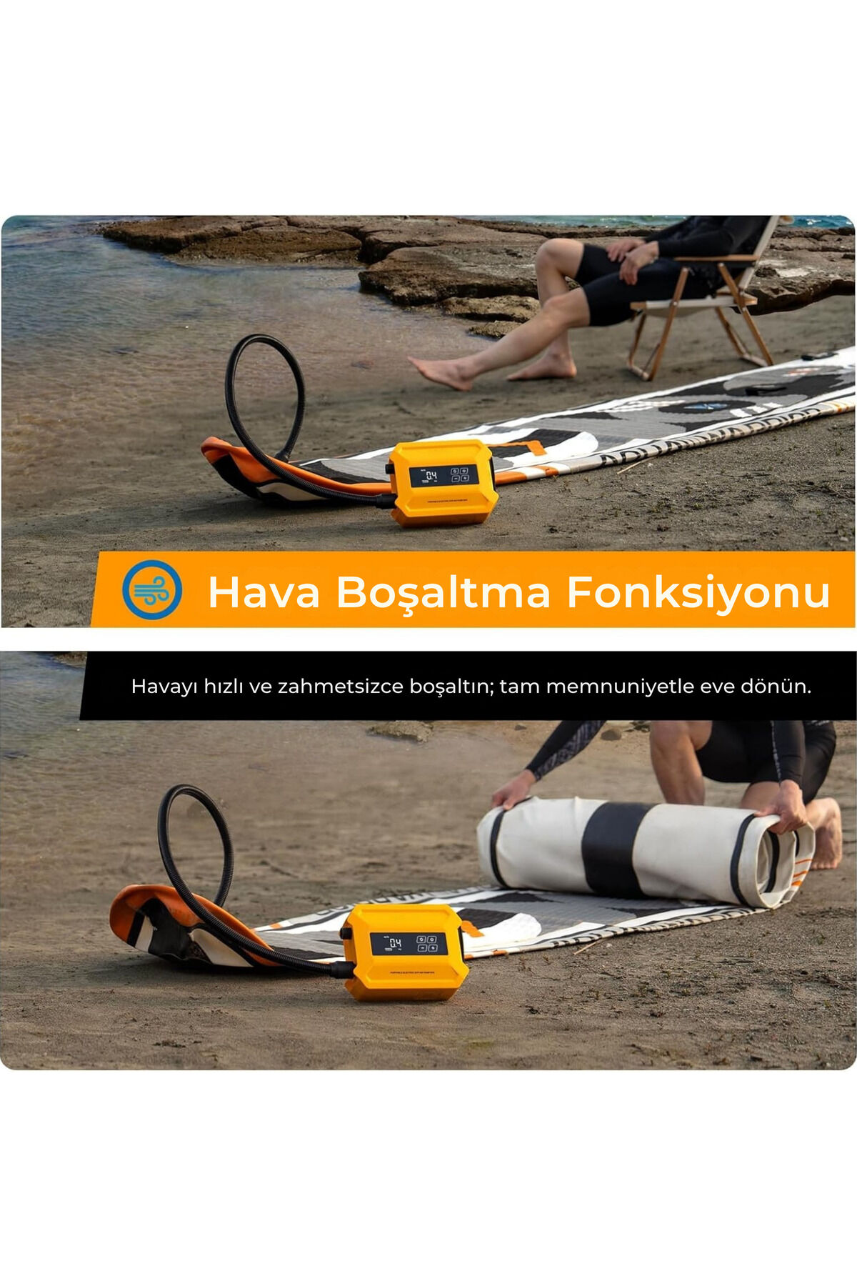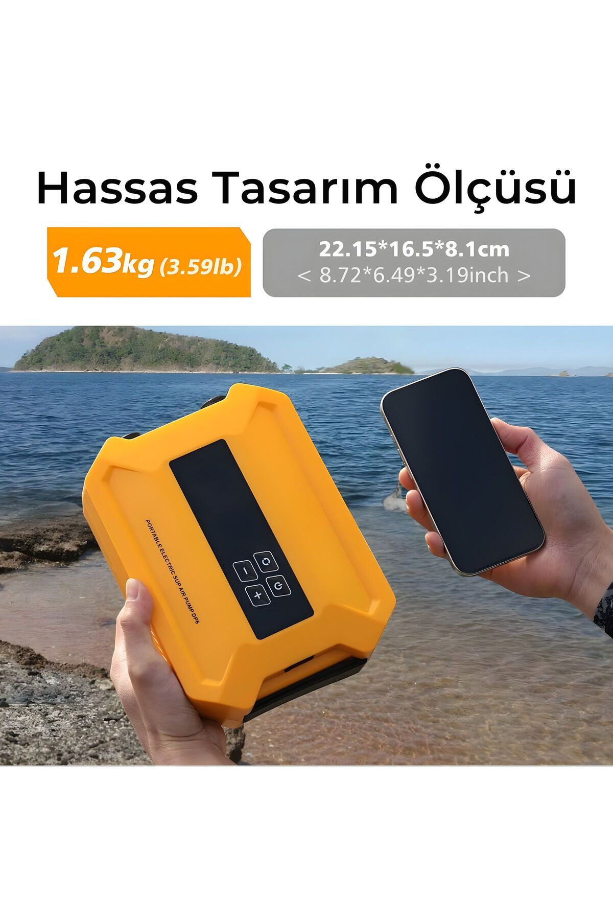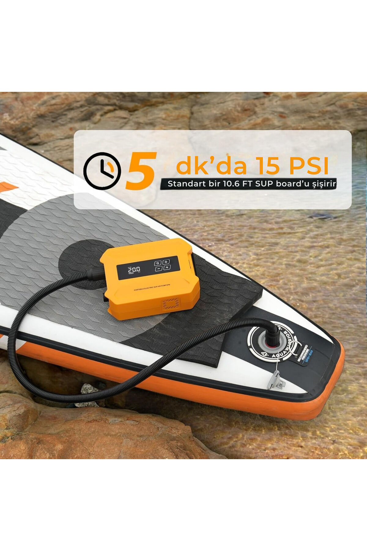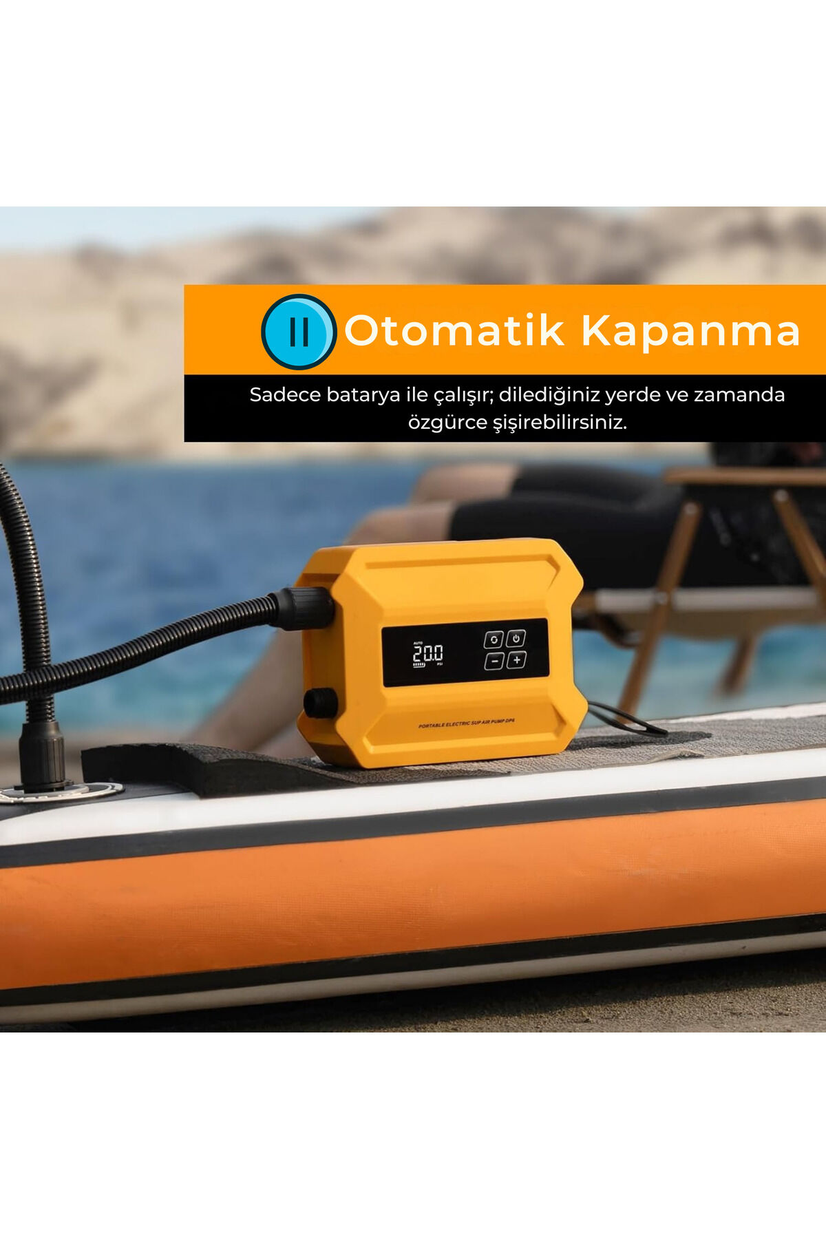 D21 Pro Şarjlı SUP Pompası – 20 PSI Elektrikli Pompa, Tek Şarjla 7 SUP - Sarı