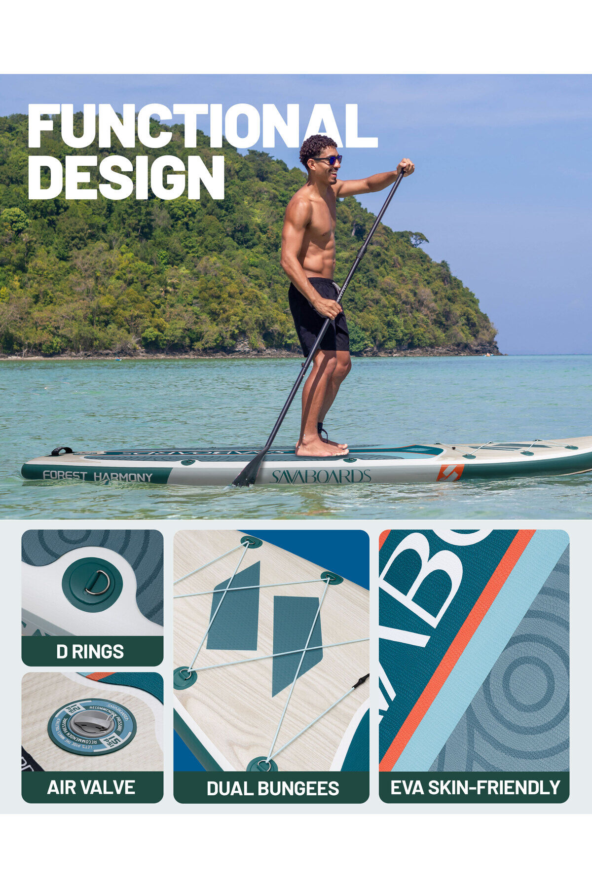 Forest Harmony 11’ Geniş ve Dengeli Şişme Paddle Board 335x86x15 cm SUP Seti - Yeşil