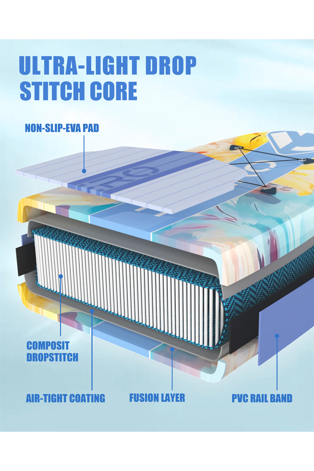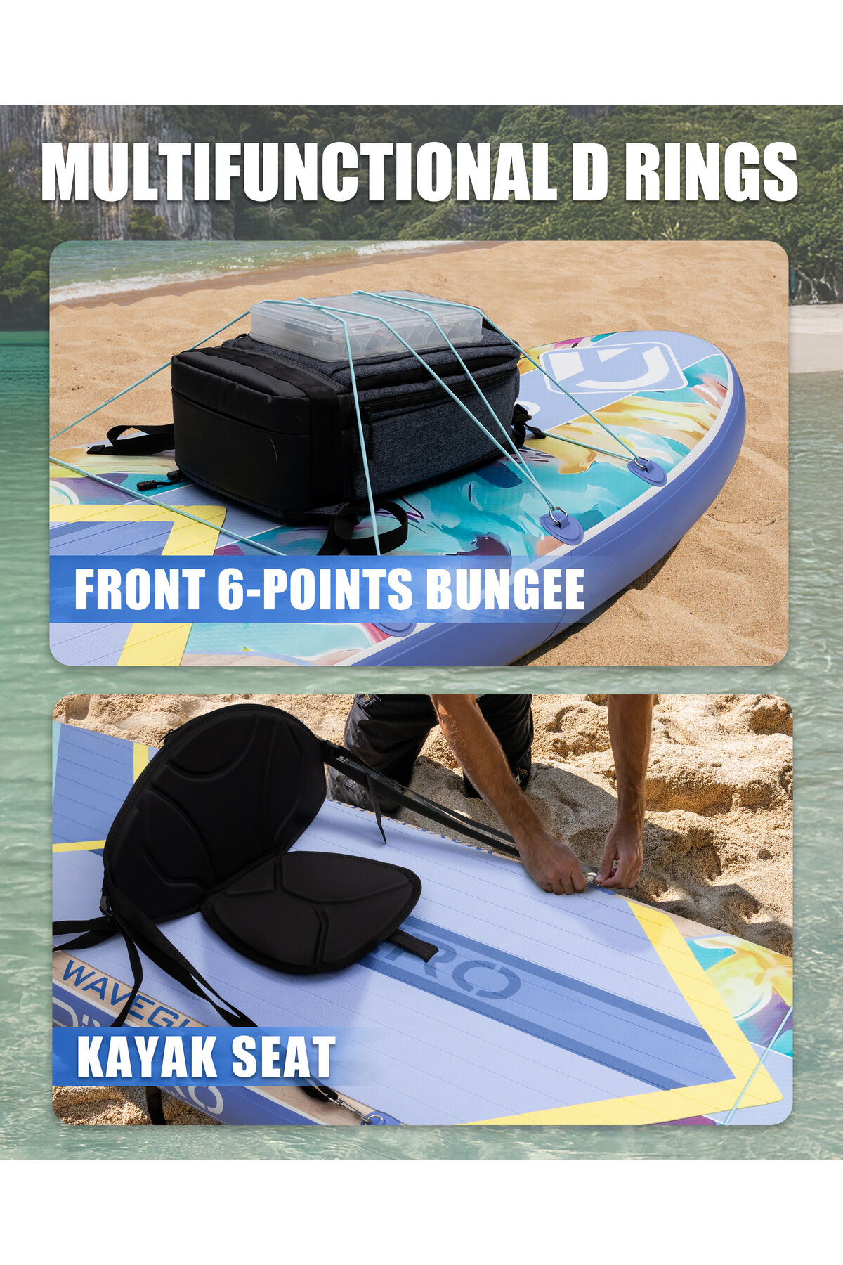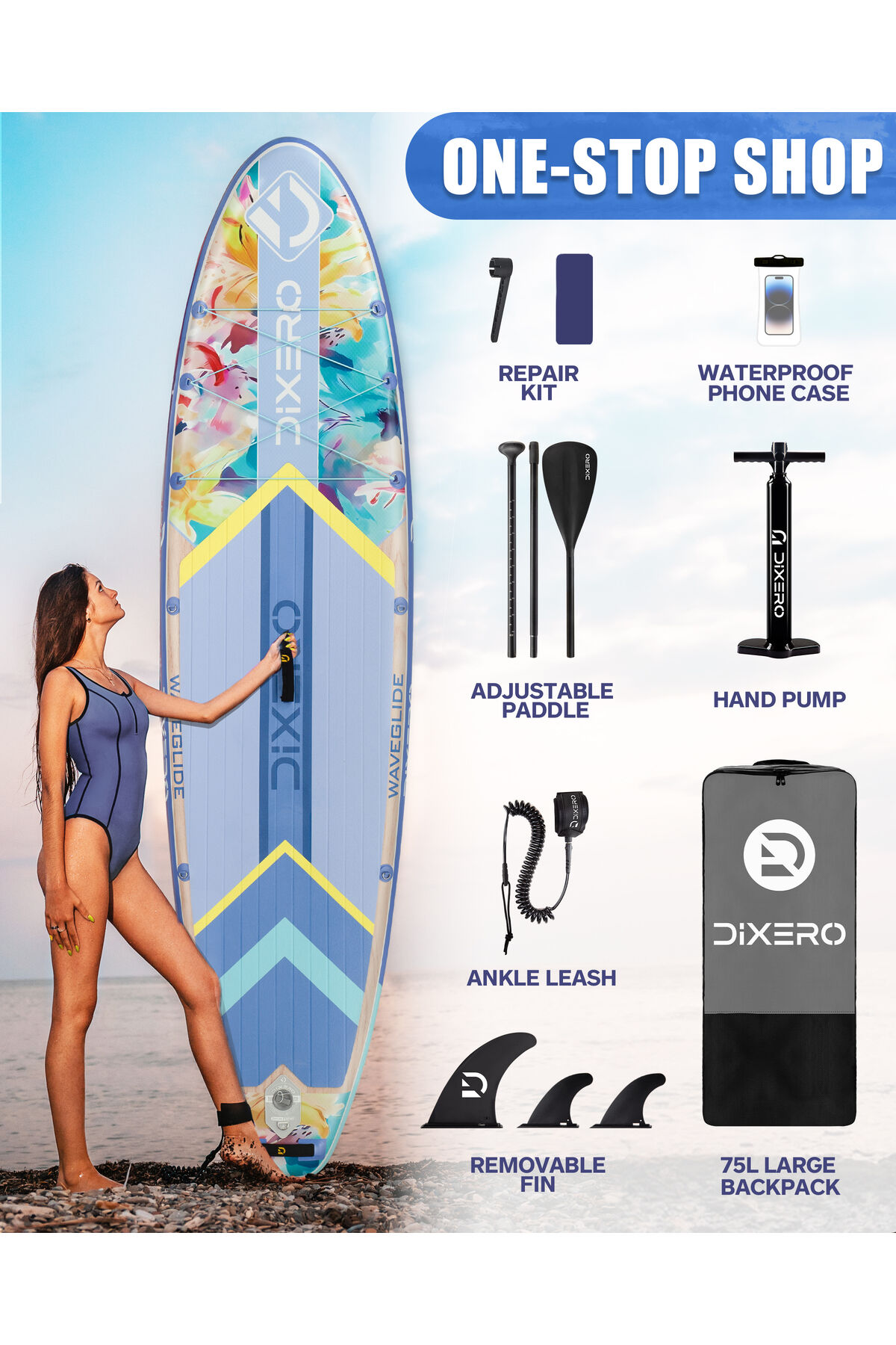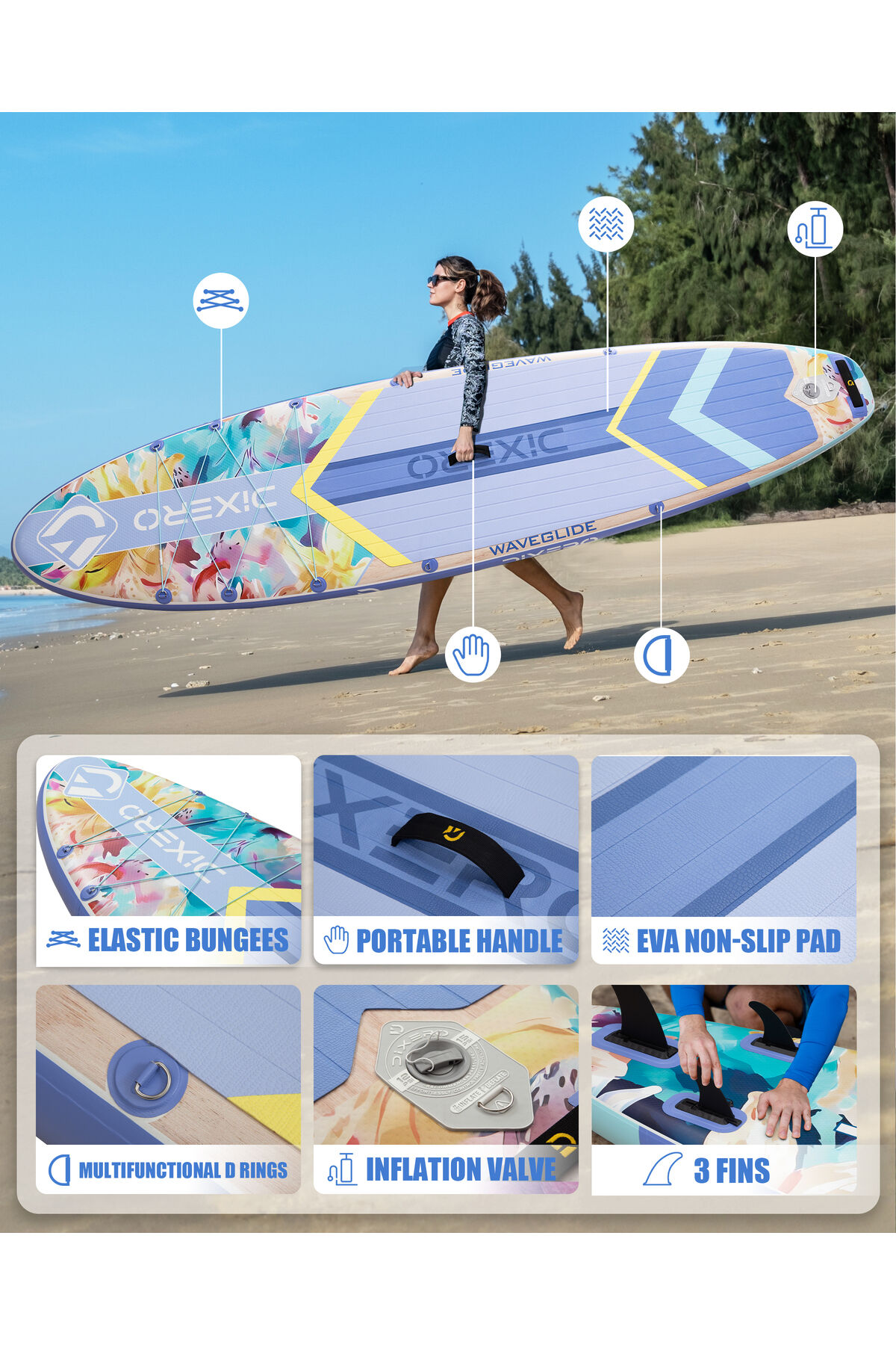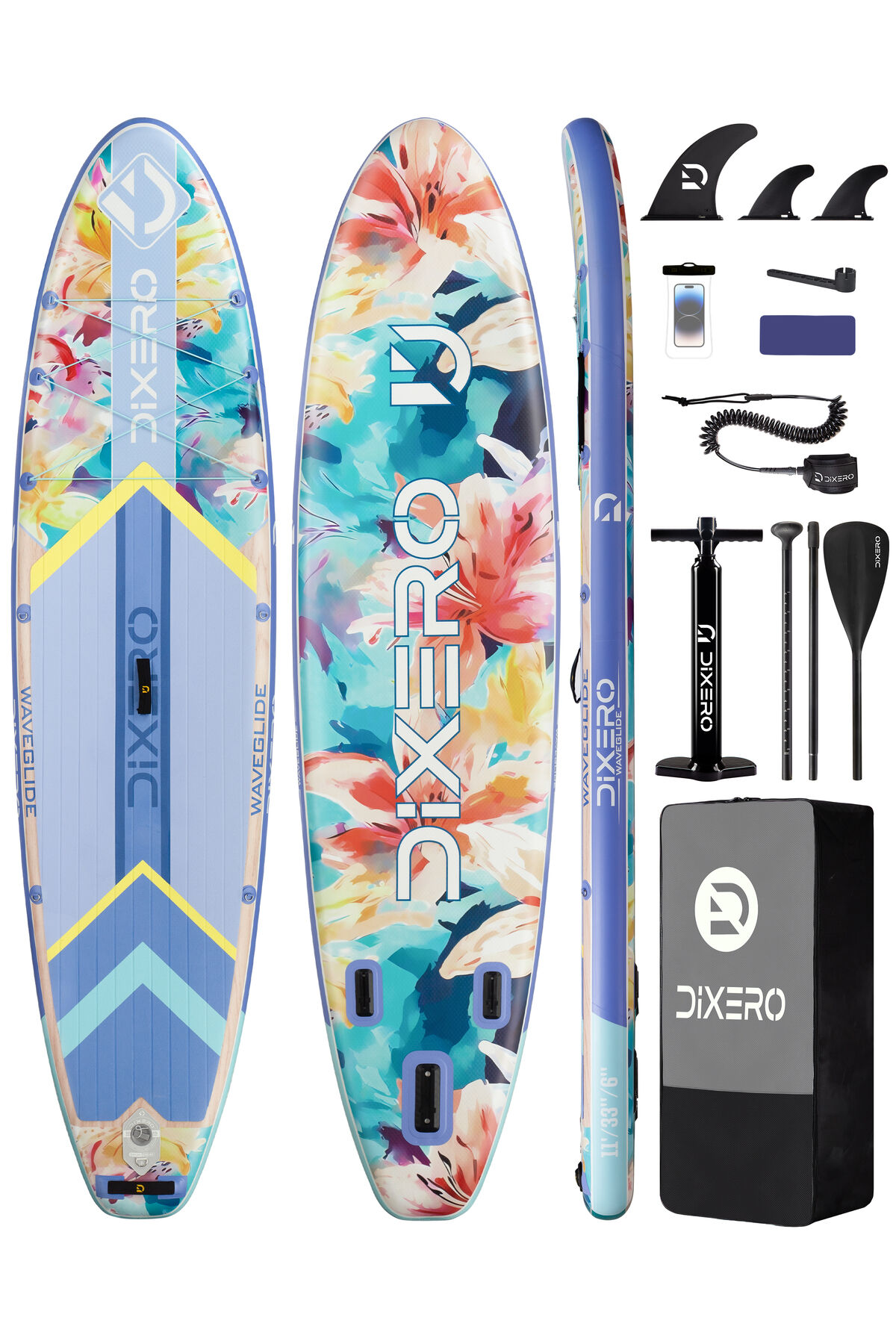 Wave Glide Flowers 335x84x15 cm Premium Şişme Paddle Board (SUP) – Özel Seri | Full Set - Mavi