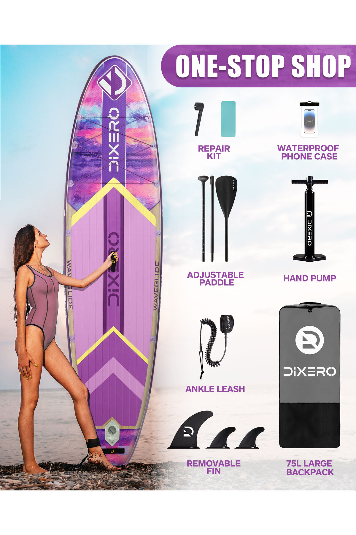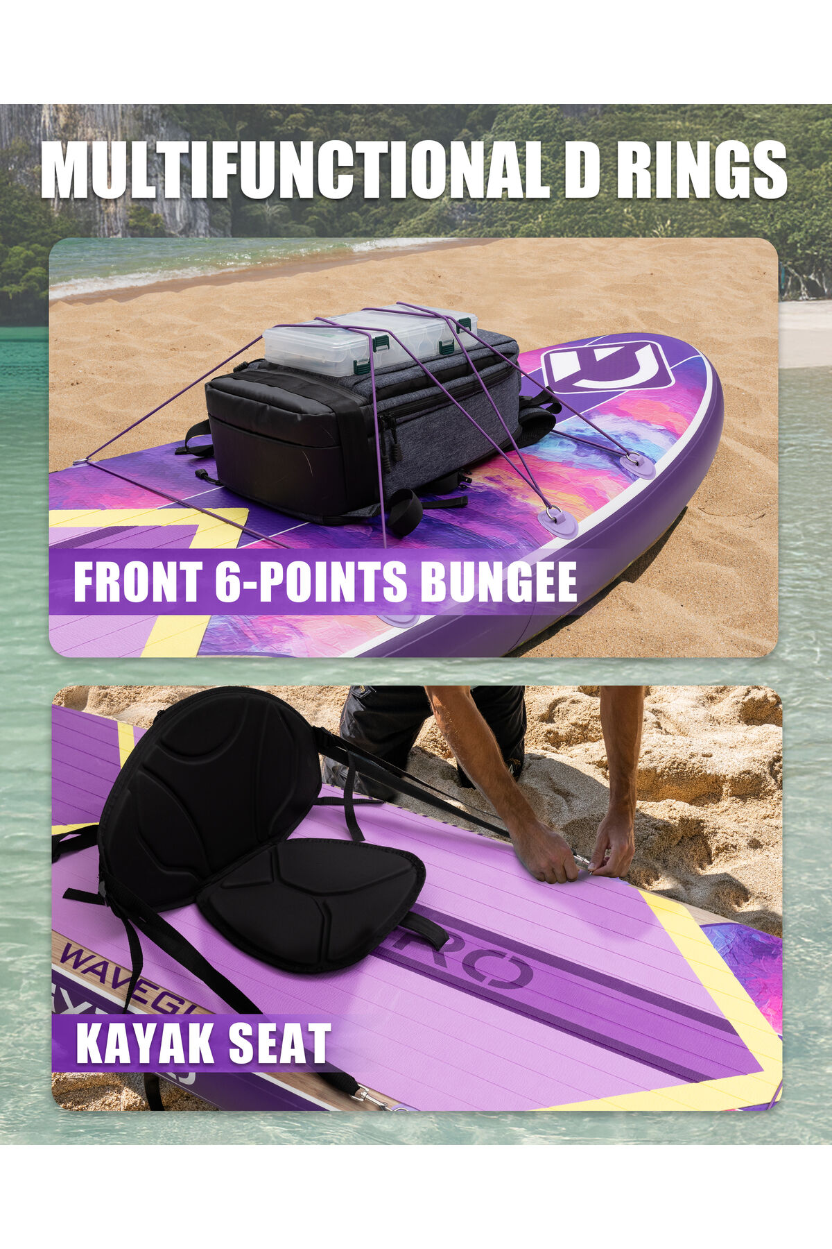 - Premium kalite: 335x84x15 cm boyutlarındaki bu paddle board, geniş ve stabil bir yüzey sunarak rahat bir kullanım sağlar.; - Full set içeriği: Set içerisinde gerekli tüm ekipmanlar bulunur, böylece suya hemen çıkmaya hazır olursunuz.; - Özel seri tasarım: Wave Glide Purple, şık ve dikkat çekici tasarımıyla su üzerinde stil sahibi bir görünüm sergiler.; - Yüksek dayanıklılık: CN menşeili bu ürün, kaliteli malzemeler kullanılarak üretilmiştir ve uzun ömürlü kullanım sunar.;