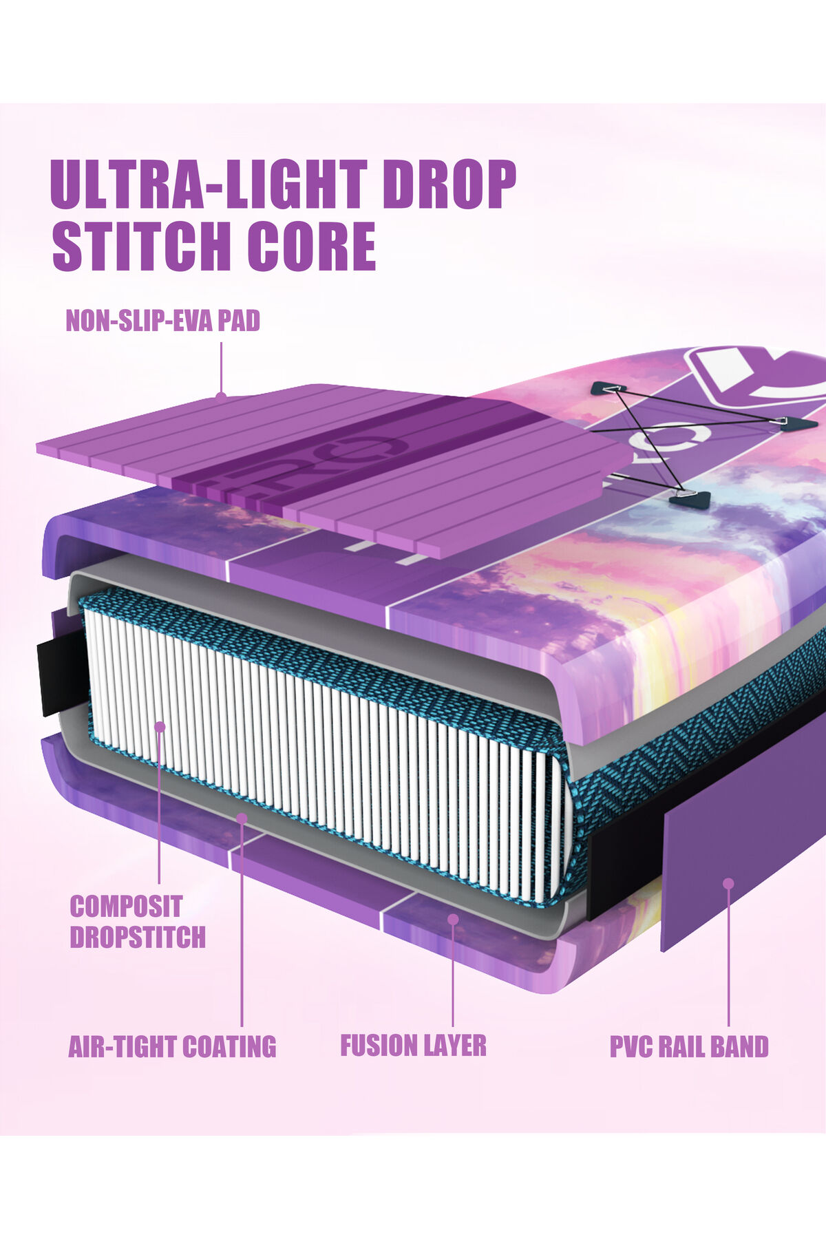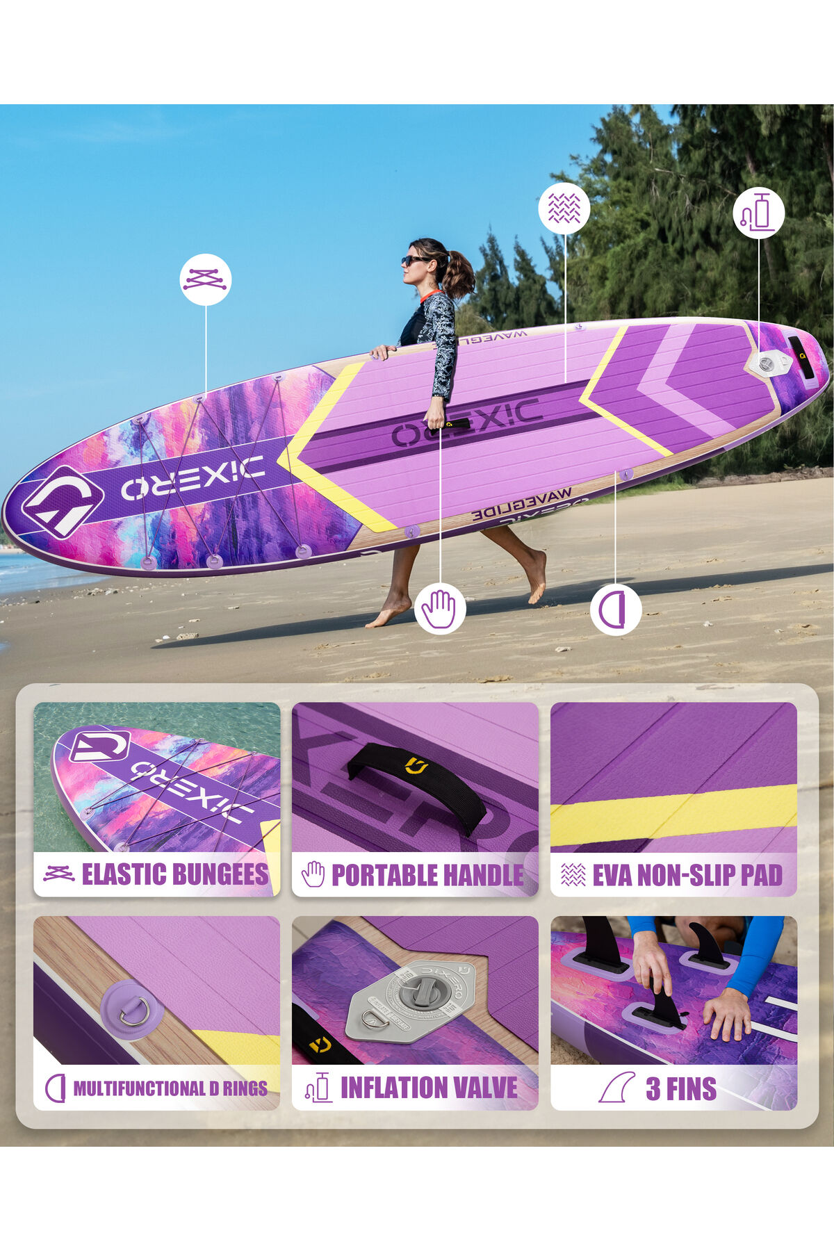 Wave Glide Purple 335x84x15 cm Premium Şişme Paddle Board (SUP) – Özel Seri | Full Set - Mor