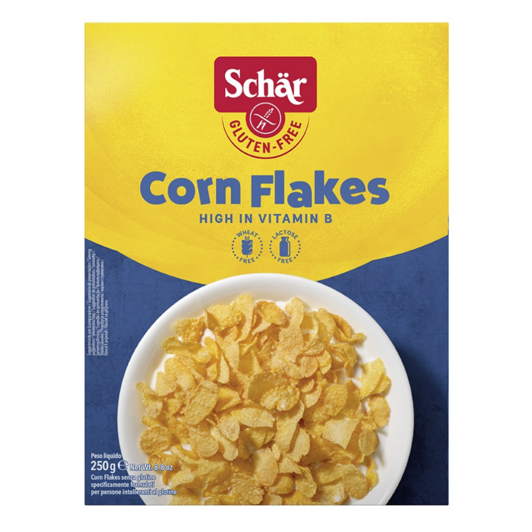 Schar Corn Flakes buğday ve diğer glutenli tahıllar kullanılmadan üretilmiş glutensiz mısır gevreğidir. Klasik corn flakes dokusuna benzer ince, gevrek pul formundadır. Tek başına sade tüketilebildiği gibi süt, yoğurt veya bitkisel içeceklerle birlikte kahvaltı kasesi yapmak için kullanılır.